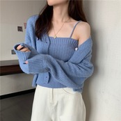 トップス レディース ニット セット キャミ カーディガン Vネック ボタン ドロップショルダー ワンサイズ 3カラー 秋 冬 カジュアル ラフ ルーズ ゆる 大人可愛い かわいい こなれ感 抜け感 オシャレ お洒落 きれいめ 大人女子 女子ウケ 学生 通学 OL ママ ミセス 公園 旅行 休日 お出かけ ショッピング デート 女子会 着回し 普段使い 韓国系 インポート 海外ファッション セレクト モテ おすすめ 人気 スタイルアップ 新作 簡単コーデ ハイセンス トレンド 流行 重ね着 楽ちん