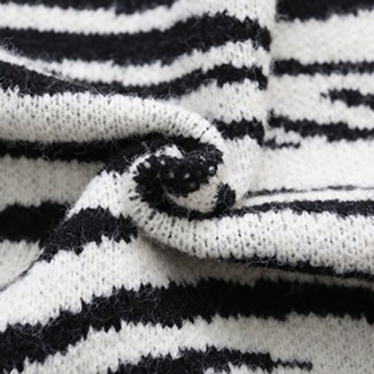 トップス ニット プルオーバー ドロップショルダー アニマル柄 ゼブラ 4サイズ ホワイト グレー 秋 冬 カジュアル ラフ ルーズ ゆる 大人可愛い かわいい こなれ感 抜け感 オシャレ レディース お洒落 大人女子 女子ウケ 学生 通学 OL ママ ミセス 公園 旅行 休日 お出かけ ショッピング デート 女子会 着回し 普段使い 韓国系 インポート 海外ファッション セレクト モテ おすすめ 人気 スタイルアップ 新作 簡単コーデ ハイセンス トレンド 流行 重ね着 楽ちん 体型カバー