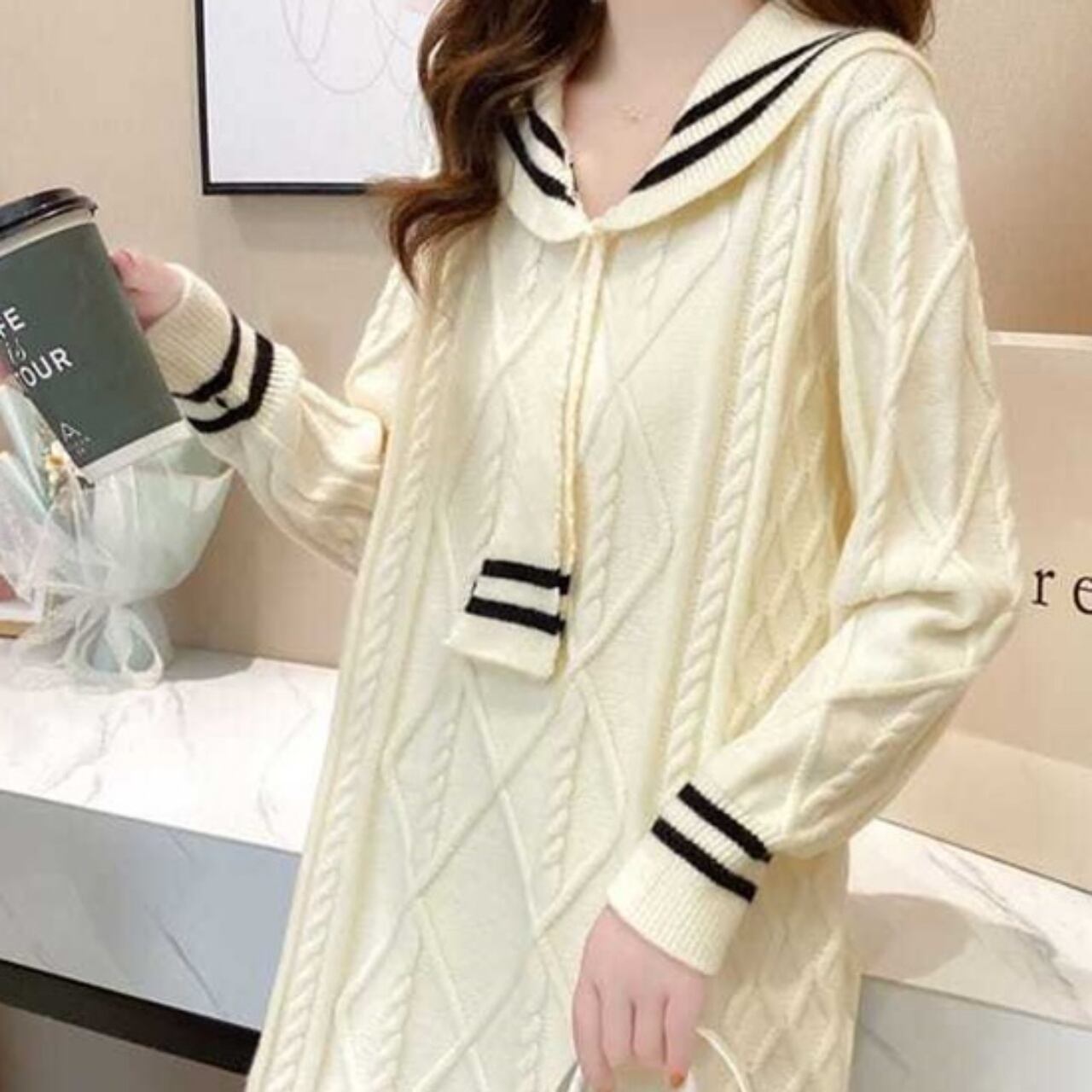 ニットワンピース ミニ丈 チュニック セーラーカラー ケーブル編み ホワイト ネイビートップス レディース 4サイズ 秋 冬 大人可愛い かわいい こなれ感 抜け感 オシャレ お洒落 大人女子 女子ウケ キュート ガーリー カジュアル ラフ ルーズ ゆる 学生 通学 OL 休日 お出かけ ショッピング デート 女子会 着回し 普段使い 韓国系 インポート 海外ファッション セレクト モテ おすすめ 人気 スタイルアップ 新作 簡単コーデ ハイセンス トレンド 流行 重ね着 楽ちん 体型カバー