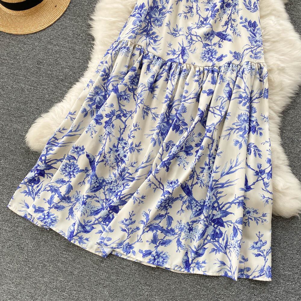 サマードレス キャミソール レディース ロング丈 肩ストラップ スクエアネック ティアードスカート フレアスカート キャミワンピ ホワイト ブルー 肩紐 スモッグ風 花モチーフ 植物モチーフ 夏服 夏ワンピ リゾート スパ 海 海岸 海辺 プール 旅行 イベント ハワイアン 涼し気 爽やか系 上品 可愛い おしゃれ シンプル 着やすい 着まわせる 簡単コーデ 女の子っぽい 女子アイテム 夏アイテム 韓国ファッション 輸入服 韓国服 プチプラ 低価格 お買い得 先取り トレンド 値段重視 かわいい 大人女子