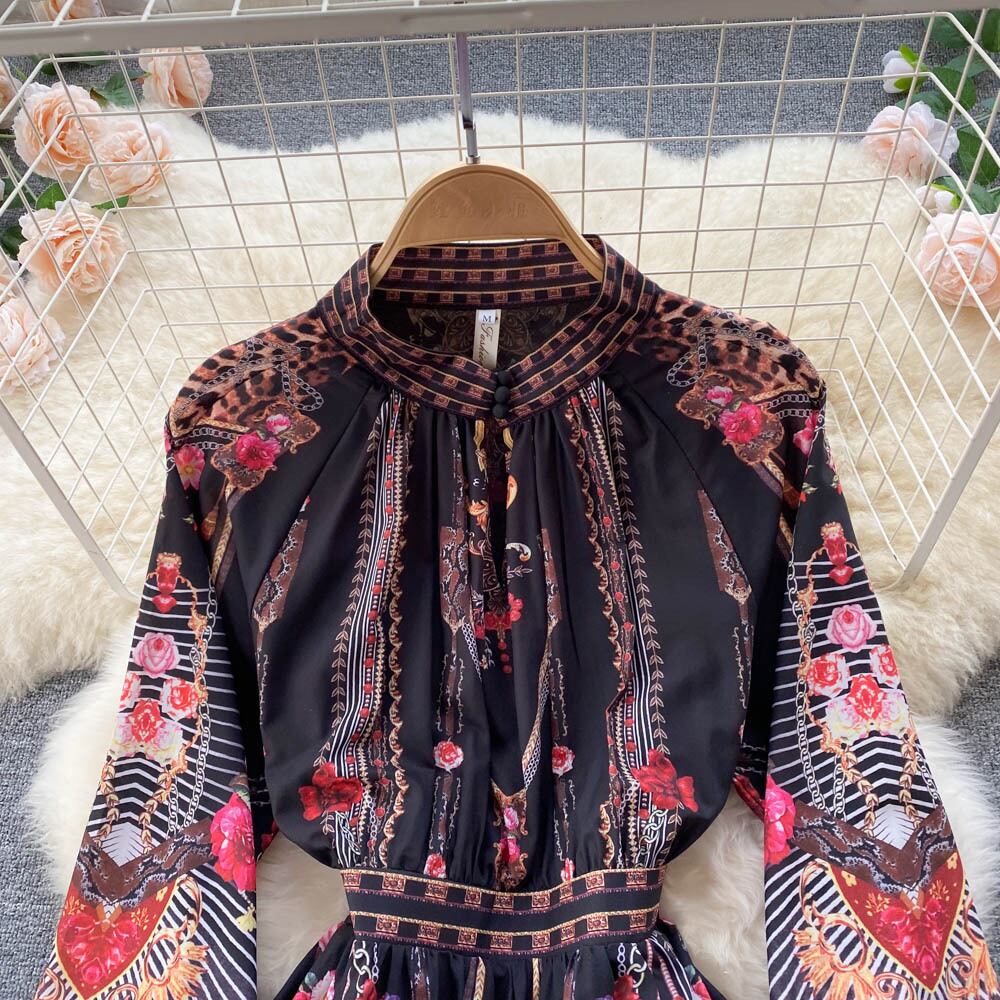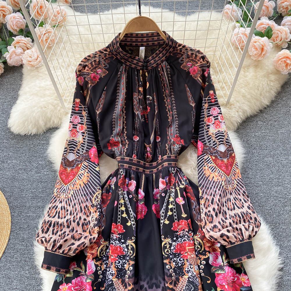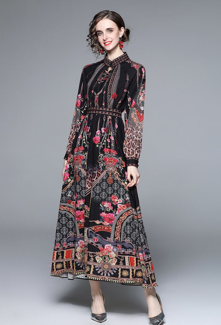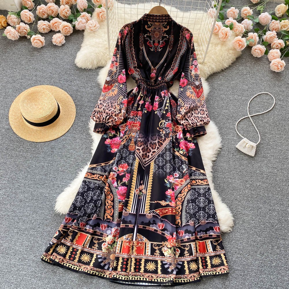 ワンピース ネールカラー ボタン プリント ヒョウ柄 黒 ブラック レトロ 幾何学 アニマル柄 フローラル 花柄 フラワー ボタニカル レディース ロングスカート フレアスカート 袖あり 長袖 かわいい 大人可愛い 大人 大人女子 きれいめ おしゃれ お洒落 カラフル ラブリー キュート ガーリー フェミニン 10代 20代 30代 通学 デート お出かけ 女子会 休日 普段使い インパクト カジュアル こなれ感 ラフ ルーズ 抜け感 個性的 存在感 ゆったり ゆる パーティー イベント エキゾチック
