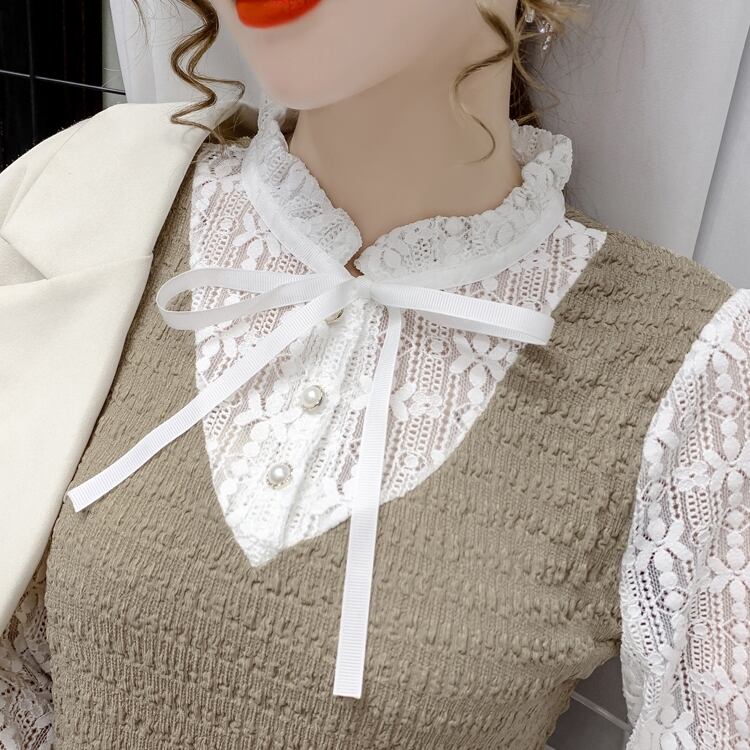 フェイクツーピース シャツスリム チョッキ ベスト 長袖ボトミング トップブラウス シャツ ホワイト 白 ブラック ブラウン 黒 茶色 シンプル 定番カラー 清潔感 清楚 無地 フリル 袖口フリル ラクチンコーデ 海外デザイントレンディ インポート プチプラ ランキング 大人女子 ホットアイテム 流行 おしゃれ かわいい ふんわり カジュアル ストリート お出かけ お呼ばれ イベント 買い物 ショッピング デート インポートファッション ネットショッピング OL 通学 プレゼント 可愛いらしい 人気
