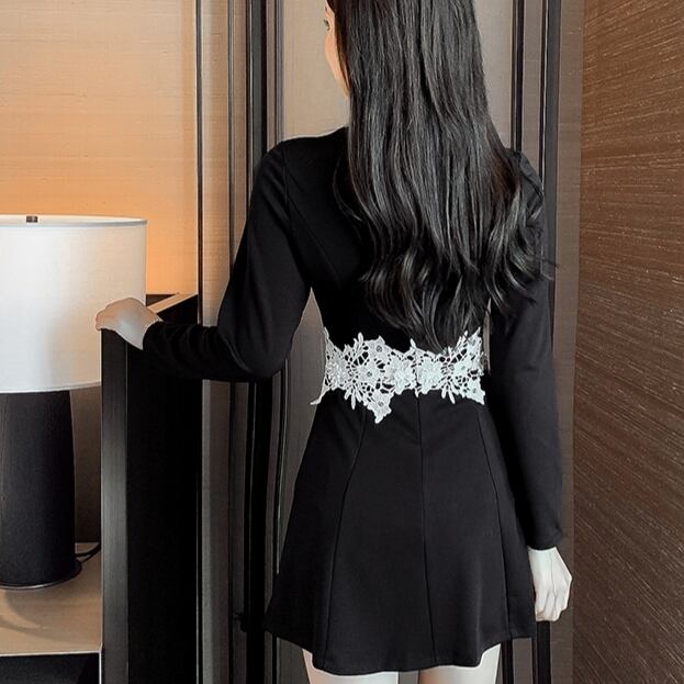 チャイナドレス レディース レース縁取り 後ろファスナー ひざ丈 タイトスカート スリット入り フレア袖 キャンディースリーブ ウエストマーク ウエストレース 黒 モノトーン 無地 シック 大人女子 大人可愛い かっこかわいい クール 中国 中華 チャイナ イベント パーティー ホームパーティー お呼ばれ お出かけ ディナー お食事 中華街 モテ服 おしゃれ トレンド モダン レトロシック 大人っぽい 韓国ファッション 輸入服 プチプラ お買い得 韓国服 S M L 10代 20代 春秋 おしゃれ中華