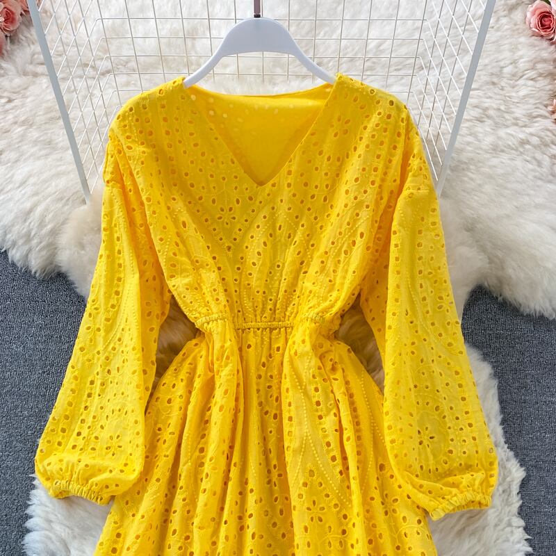 ワンピース 刺繍 ロングワンピース パフスリーブ パステルカラー ピンク パープル イエロー グリーン ブルー ホワイト Vネック ナチュラル 長袖 袖あり Aライン ハイウエスト フレアスカート フェアリー 妖精 薄手 裏地付き ポリエステル デート 食事 お呼ばれ 女子会 イベント 休日 普段使い 着回し 10代 20代 30代 楽ちん 大人可愛い モテ シンプル カジュアル かわいい ガーリー ラブリー 清楚 学生 レディース おしゃれ お洒落 こなれ感 抜け感 プチプラ インポート お買い得 韓国