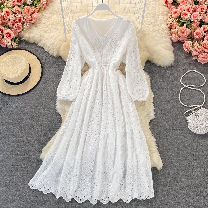 女性らしいシルエットのナチュラルな刺繍ワンピースです。
