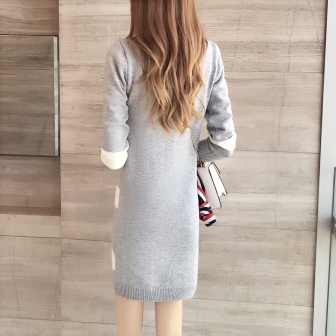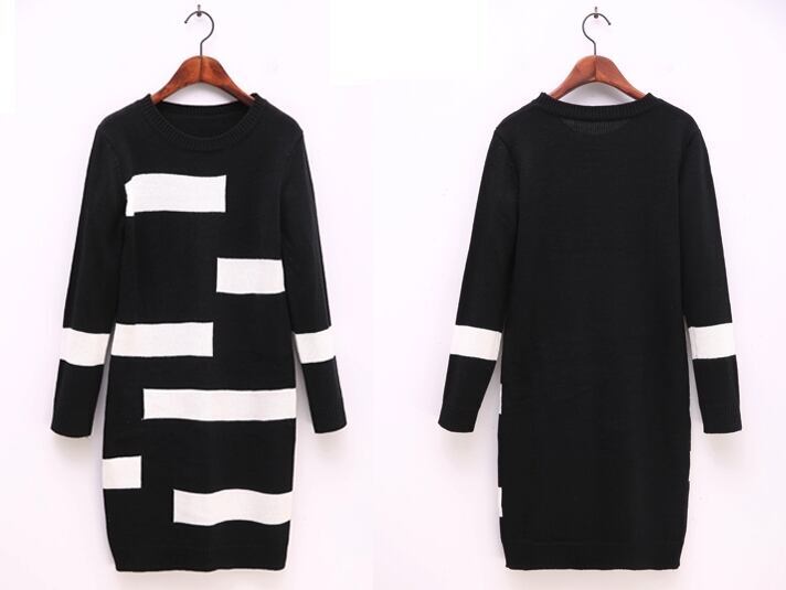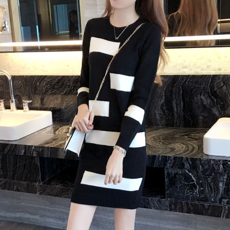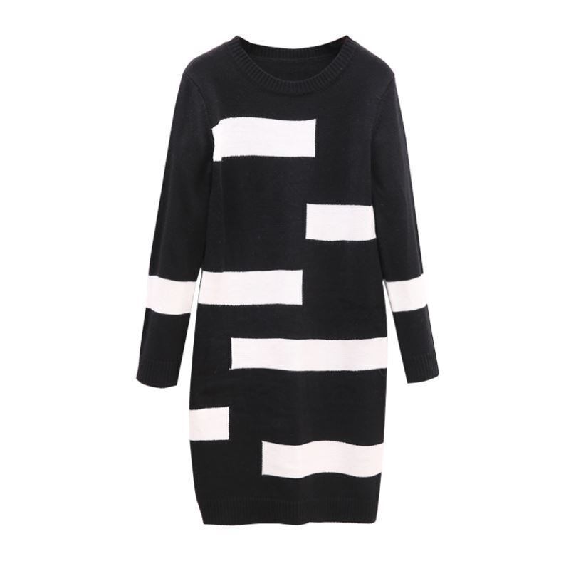 ランダムライン ボーダー風 モノトーン配色 スタイリッシュ ワンピース ひざ丈 膝上 ミディアム丈 袖あり 長袖 クルーネック タイト Iライン スマート 切り替えデザイン 綿 ポリエステル ニット シンプル カジュアル 上品 おしゃれ お洒落 かっこいい 大人女子 個性的 クール 存在感 柄 ボーダー シマ 春 秋 冬 レディース ママ 女の子 学生 通学 お出かけ 女子会 休日 普段使い 韓国系 オルチャン コーデ 体系カバー M L XL 2XL 3XL 大きいサイズ ブラック グレー