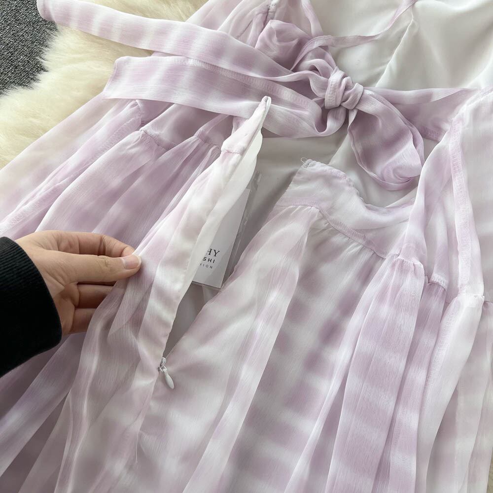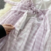 ワンピース キャミワンピ バックリボン リボン ファスナー ストライプ ホルターネック ロング丈 ロング 袖なし ノースリーブ 襟なし ギャザー ティアード 透け感 シースルー 紫 パープル ライトパープル かわいい 大人可愛い 大人 大人女子 きれいめ おしゃれ お洒落 シンプル ラブリー キュート ガーリー フェミニン 10代 20代 学生 通学 デート 女子会 休日 カジュアル こなれ感 ラフ ルーズ 抜け感 ゆったり ゆる レディース セクシー パーティー イベント リゾート 海 プール モテ
