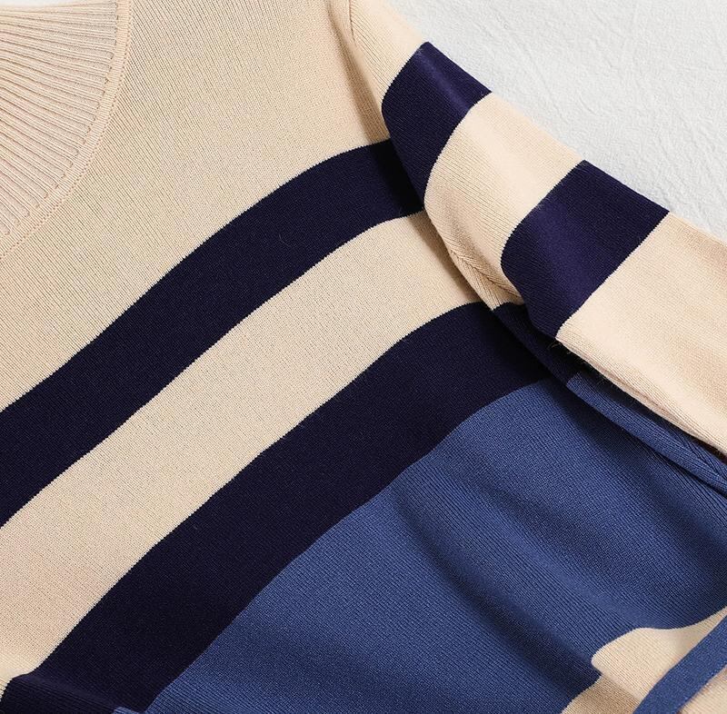 ワンピース リボン ストライプ柄 上品 ハーフハイネック 長袖 ミディアム丈 ウエスト 大人の女性 スリムスタイル モダン レディース おしゃれ お洒落 可愛い 大人可愛い 大人女子 フェミニン ラブリー モテ ガーリー 普段使い パーティー イベント お出かけ デート プチプラ 高見えインポートファッション ネットショッピング 流行り 流行 トレンド ギフト プレゼント 定番 秋 冬 20代 30代 40代 シンプル 楽ちんコーデ スリム効果 あったかコーデ シック 動きやすい 女性らしいスタイル 通勤