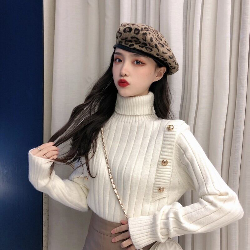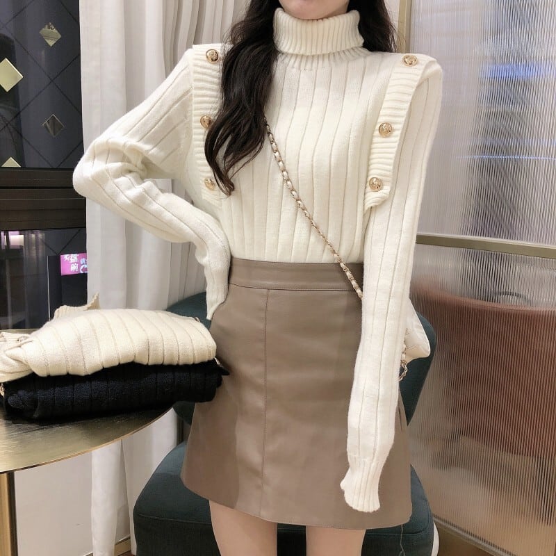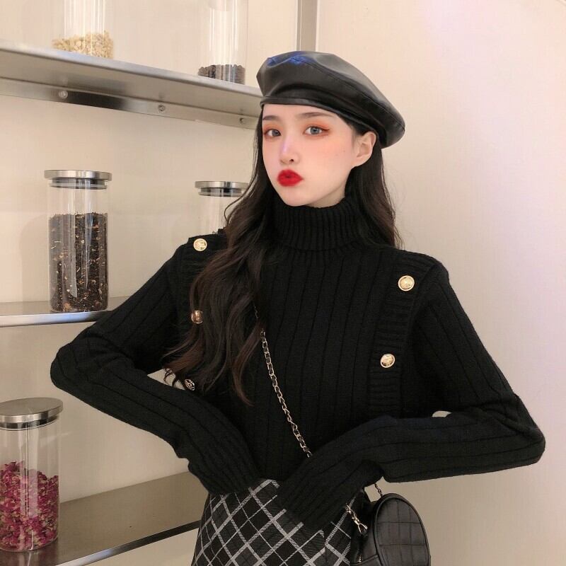 ハイネックセーター レディース ニットセーター 飾りボタン 無地 単色 ハイゲージ リブ編み シンプル タートルセーター タートルネック 冬トップス 柔らか素材 可愛い おしゃれ 一捻り トレンド 通勤 通学 デート ランチ 飲み会 女子会 定番 黒 白 モノトーン ベージュ ニット 着やすい 着まわせる 10代 20代 30代 大人女子 大人可愛い 好感度アップ 高コスパ 韓国ファッション 韓国服 インポート 輸入服 低価格 値段重視 お買い得 ワンサイズ プチプラ 秋冬 女の子っぽい かわいい