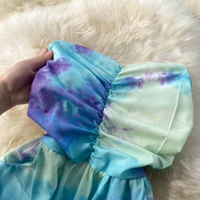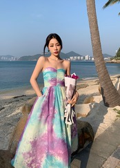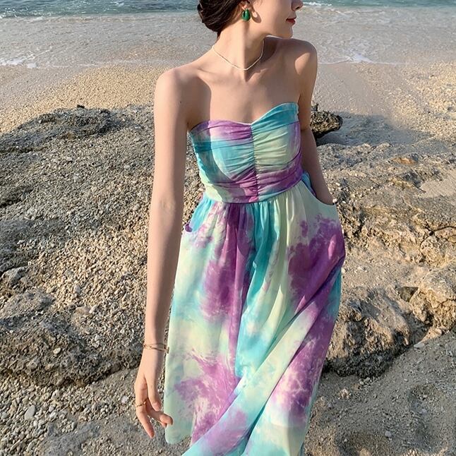 新作 ワンピース カラフル インパクト ロングスカート 袖なし ノースリーブ オフショルダー 襟なし ギャザー 膝丈 ポケット グラデーション オーロラ 紫 パープル かわいい 大人可愛い 大人 大人女子 きれいめ おしゃれ お洒落 シンプル ラブリー キュート ガーリー フェミニン 10代 20代 学生 通学 デート お出かけ 女子会 休日 普段使い カジュアル こなれ感 ラフ ルーズ 抜け感 ゆる セクシー レディース 披露宴 パーティー イベント リゾート 夏 旅行 海 プール インスタ映え モテ