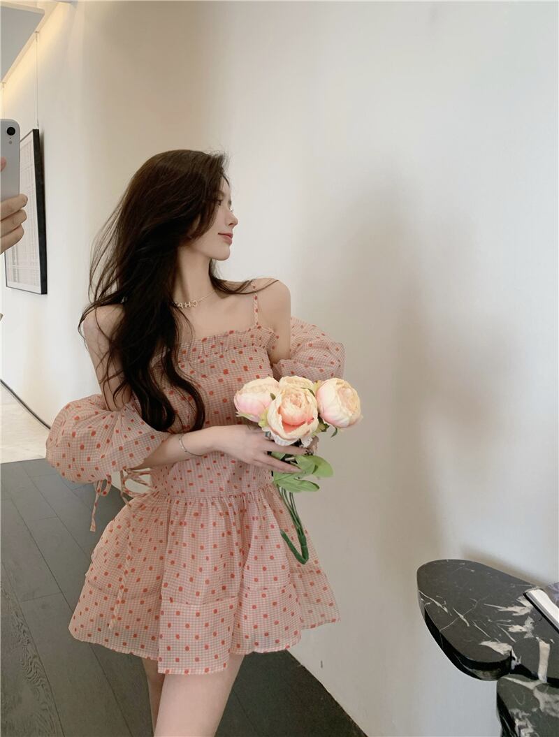ワンピース バブルスリーブ アームドレス キャミソール バブルスリーブ ピンクドレス チュチュ 乙女 特別 大人可愛く ミニスカート ミニ丈 ミニ 袖あり 襟なし ギャザー フリル リボン ふんわり ドット 丸 点々 ピンク かわいい 大人可愛い 大人 大人女子 きれいめ おしゃれ お洒落 シンプル ラブリー キュート ガーリー フェミニン 10代 20代 学生 通学 お出かけ 女子会 休日 カラフル インパクト カジュアル こなれ感 ラフ ルーズ 抜け感 ゆったり ゆる セクシー パーティー イベント