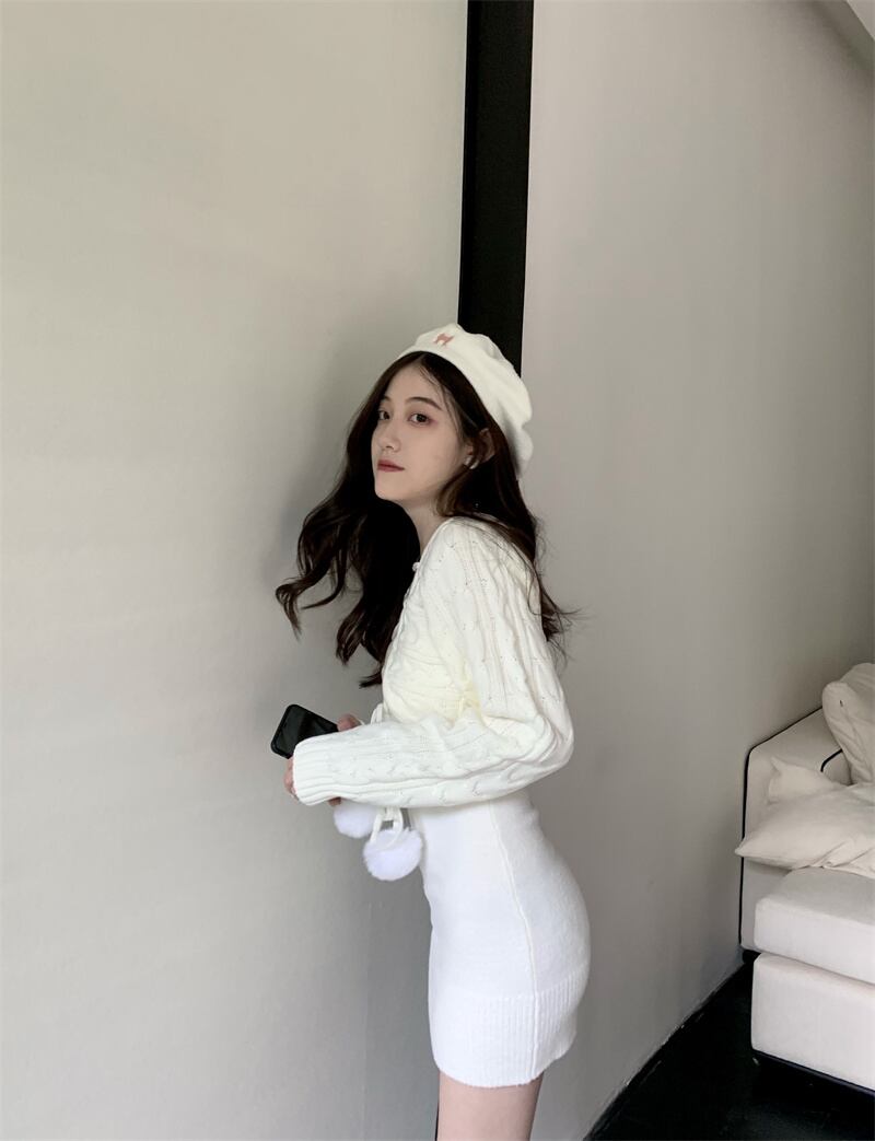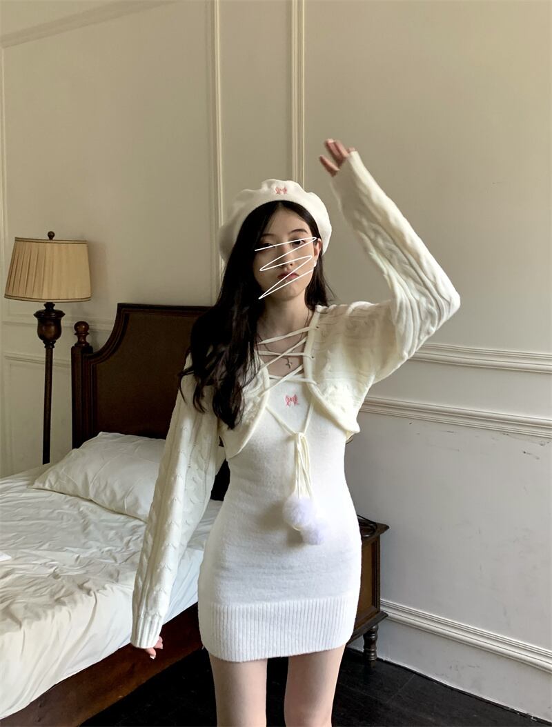 ワンピース カーディガン 2点セット セット ミニワンピース タイトワンピース ボンボン付きカーディガン レディース おしゃれ お洒落 可愛い 大人可愛い 大人女子 フェミニン ラブリー モテ ガーリー 普段使い パーティー イベント お出かけ デート プチプラ 高見えインポートファッション ネットショッピング 流行り 流行 トレンド ギフト プレゼント セクシー 秋 冬 10代 20代 ヤング ボディライン ホワイトコーデ モダン 楽ちんコーデ 甘めスタイル タイトミニ 脚長効果 美脚効果 スリム効果