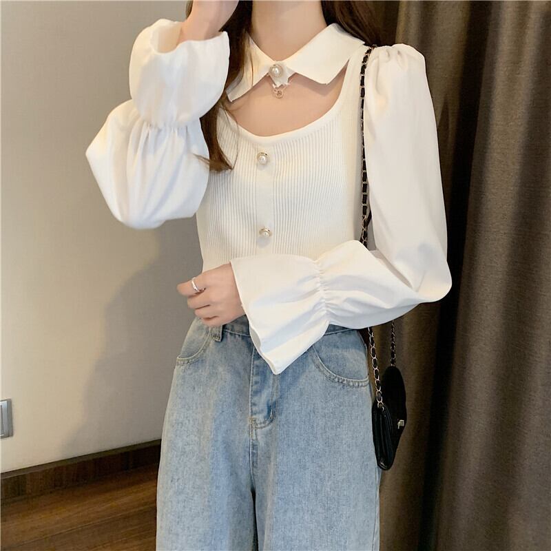 ニット トップス 襟付き 肌見せ ガーリー 上品 ブラウス モテ 長袖 きちんと感 お出かけ デート お食事 お呼ばれ 特別な日 秋 冬 ファッション 白 ホワイト アプリコット 黒 ブラック かわいい シック クラシック きれいめ 高見え 上品 大人かわいい 大人女子 通学 大学生 学生 OL ワンサイズ プルオーバー 韓国 韓国系 韓国ファッション 10代 20代 ラブリー キュート 清楚 個性的 異素材MIX フリル袖 女子会 お食事 イベント オルチャン おしゃれ お洒落 普段使い 着回し 重ね着