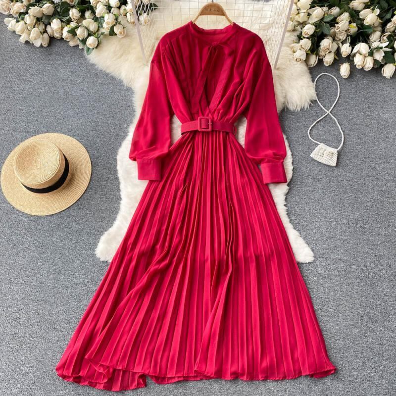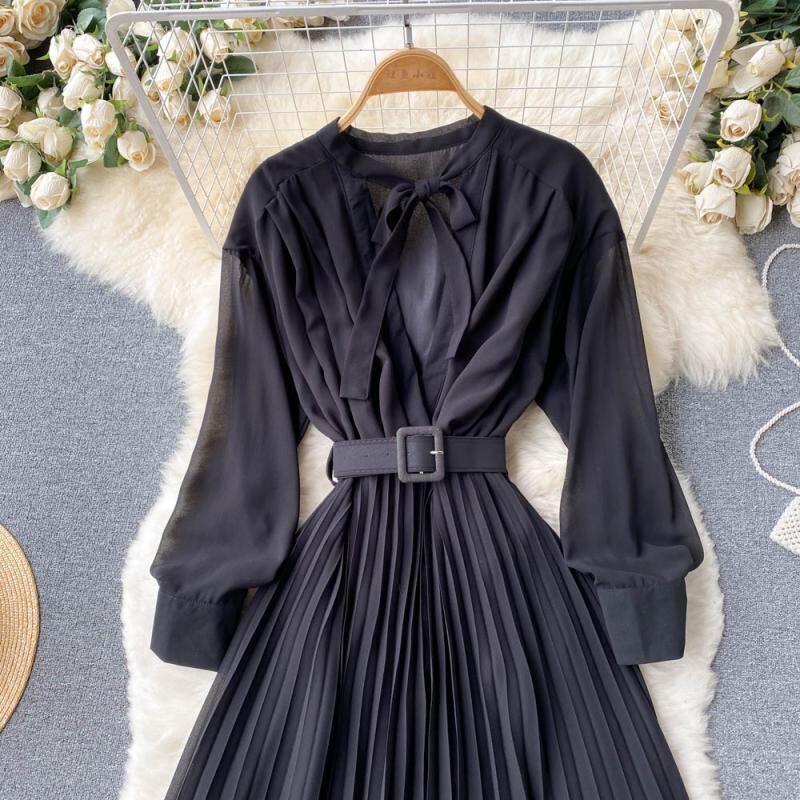 ワンピース プリーツスカート 黄色 イエロー 黒 ブラック 緑 グリーン ピンク 赤 レッド オレンジ ロングスカート アコーディオンプリーツ 袖あり 長袖 襟なし リボンタイ ギャザー プリーツ ウエストマーク ベルト レディース かわいい 大人可愛い 大人 大人女子 きれいめ おしゃれ お洒落 シンプル ラブリー キュート ガーリー フェミニン 10代 20代 30代 通勤 学生 通学 デート お出かけ 女子会 休日 普段使い カジュアル こなれ感 ルーズ 抜け感 ゆったり ゆる 上品 エレガント