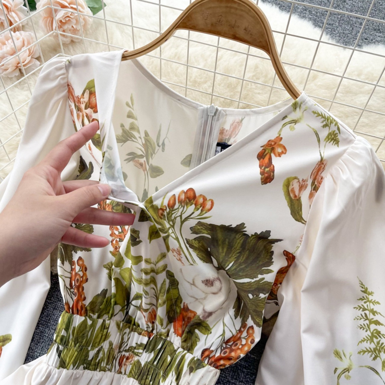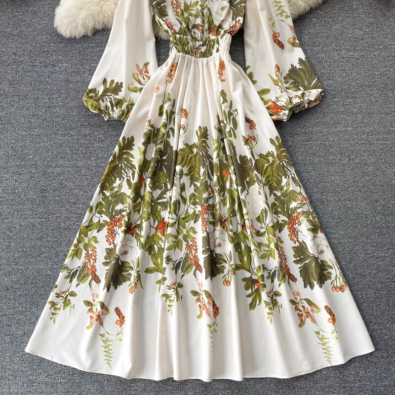 ワンピース ロングスカート フレアスカート 白 ホワイト 袖あり 長袖 ボリューム袖 Vネック 襟なし ウエストマーク ウエストゴム 伸縮性 レディース かわいい 大人可愛い 大人 大人女子 きれいめ おしゃれ お洒落 シンプル ラブリー キュート ガーリー フェミニン 10代 20代 30代 通勤 学生 通学 デート お出かけ 女子会 休日 普段使い カジュアル こなれ感 ラフ ルーズ 抜け感 モテ ゆったり ゆる 上品 エレガント 披露宴 パーティー イベント フローラル 花柄 フラワー ボタニカル