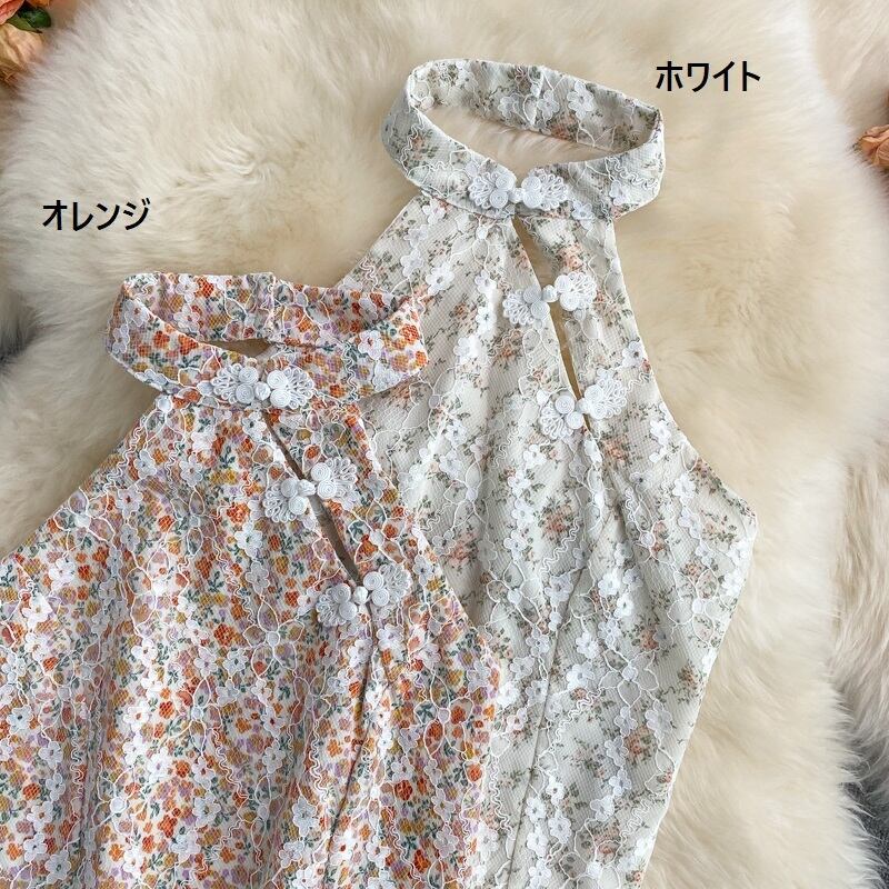 トップス レース 小花柄 花柄 総柄 チャイナトップ スホルターネック チャイナ服 プルオーバー 背中シャーリング 短め丈 夏服 可愛い レディース 10代 20代 チャイナヴィンテージ バックオープン 真夏 海 イベント デート プール 海岸 旅行 リゾート 普段使い おしゃれ トレンド 肩出し セクシー キュート 女の子っぽい 好感度アップ モテ服 可愛い 韓国服 韓国ファッション インポート 輸入服 重ね着 着まわせる 簡単コーデ 主役級 カジュアル 低価格 お買い得 大人女子 大人可愛い 着やすい