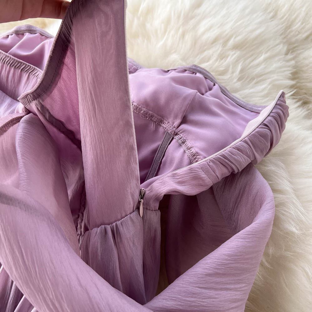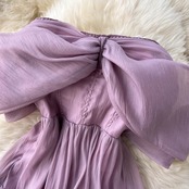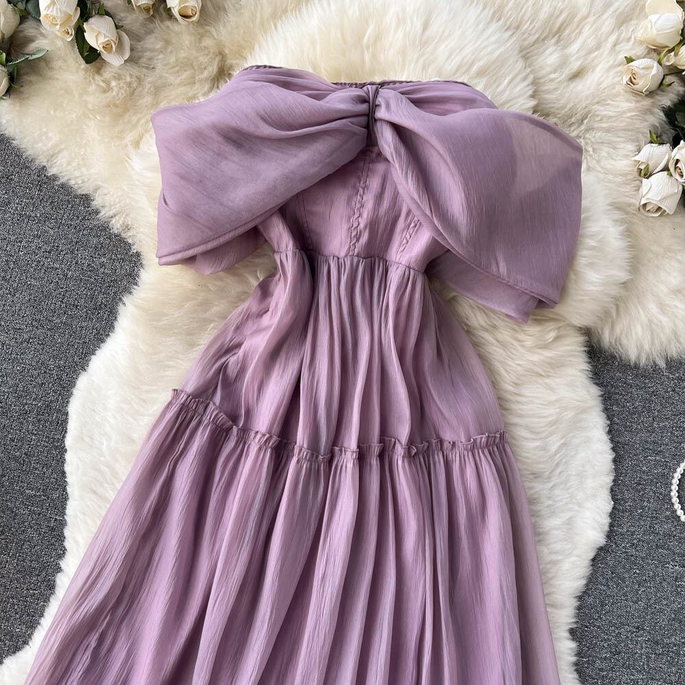 ドレス ワンピース リボン 透け感 シースルー 紫 パープル チューブトップ ベアトップ ロングスカート チュールスカート ロング丈 袖なし ノースリーブ 襟なし ギャザー チュール シフォン レディース デコルテ 無地 豪華 ゴージャス インパクト かわいい 大人可愛い 大人 大人女子 きれいめ おしゃれ お洒落 ラブリー キュート ガーリー フェミニン 10代 20代 学生 お出かけ 休日 カジュアル こなれ感 抜け感 ゆったり ゆる 上品 エレガント セクシー 二次会 披露宴 パーティー イベント