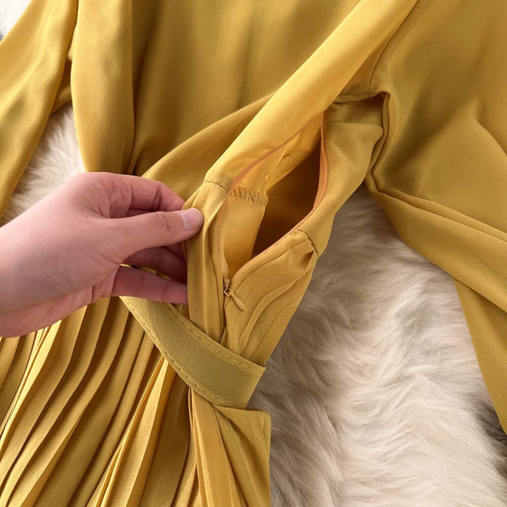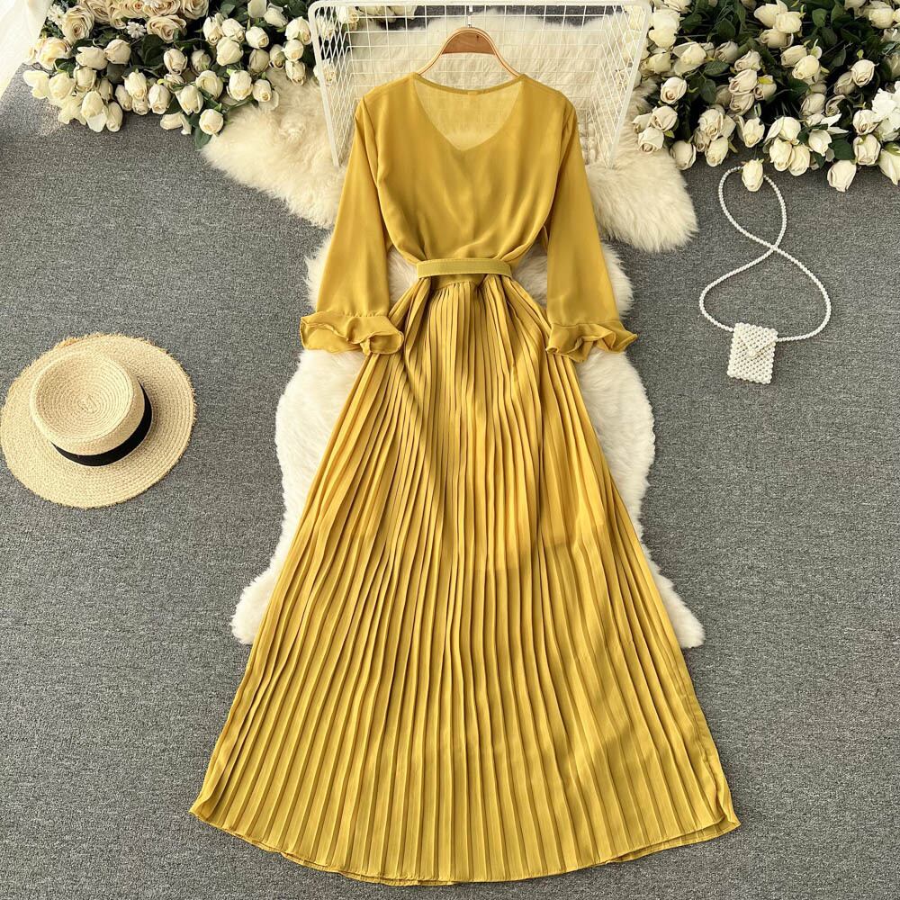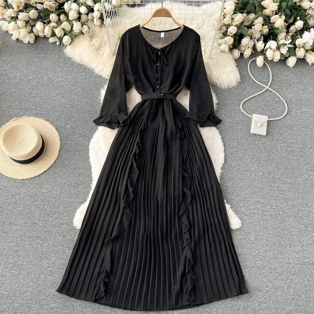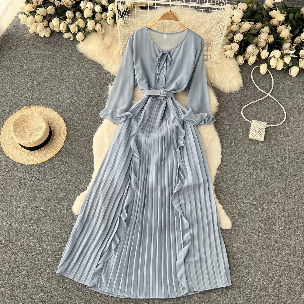 ワンピース レディース アコーディオンプリーツ ロングスカート プリーツスカート ロング丈 袖あり 長袖 フリル 襟なし リボン ベルト ウエストマーク 切り替えデザイン ピンク 青 ブルー 黒 ブラック ローズレッド 黄色 イエロー 赤 レッド かわいい 大人可愛い 大人 大人女子 きれいめ おしゃれ お洒落 シンプル ラブリー キュート ガーリー フェミニン 10代 20代 30代 通勤 学生 通学 デート お出かけ 女子会 休日 普段使い カジュアル こなれ感 抜け感 上品 エレガント パーティー