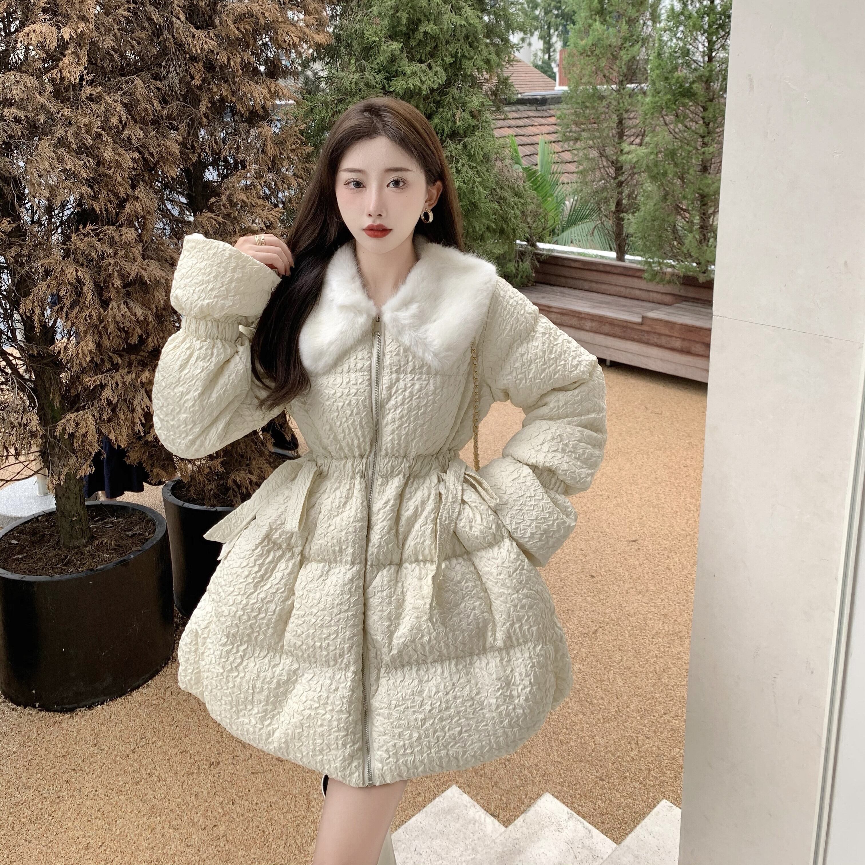 ハーフコート 冬アウター 黒 白 ツートンカラー モノトーン 中綿コート フロントファスナー ショートコート 襟ファー ファー付き ウエスト紐 紐調節 ウエスト調節 レディース 襟付き 女の子っぽい 可愛い トレンド おしゃれ モテ服 10代 20代 話題 コートドレス ワンピース風コート ドール系 ゴシック風 アイドル系 通勤 通学 デート お食事 カジュアル オフィスカジュアル ランチ 大人女子 大人可愛い 冬服 キルティング 膨張感防止 防寒着 韓国ファッション 韓国服 インポート 韓国かわいい