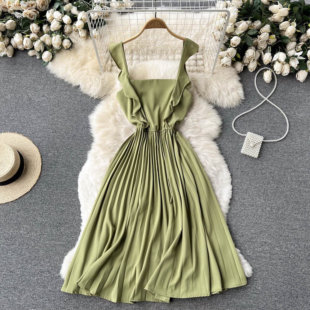 ワンピース カラードレス 白 アプリコット 黒 ブラック 黄色 イエロー 青 ブルー 紫 パープル 緑 グリーン 茶色 キャラメル 赤 レッド アコーディオンプリーツ プリーツスカート キャミワンピ ノースリーブ 袖なし 襟なし フリル カラバリ豊富 かわいい 大人可愛い 大人 大人女子 きれいめ おしゃれ お洒落 豪華 ゴージャス ラブリー キュート ガーリー フェミニン 10代 20代 学生 通学 デート お出かけ 女子会 休日 こなれ感 抜け感 セクシー 二次会 披露宴 パーティー イベント