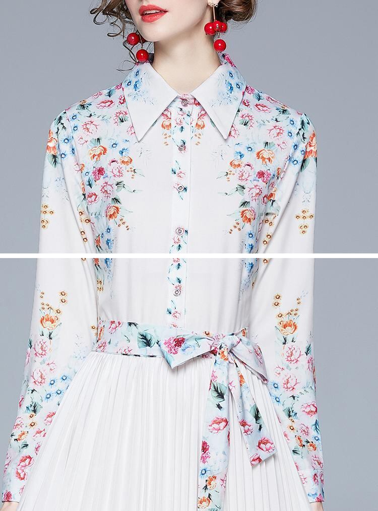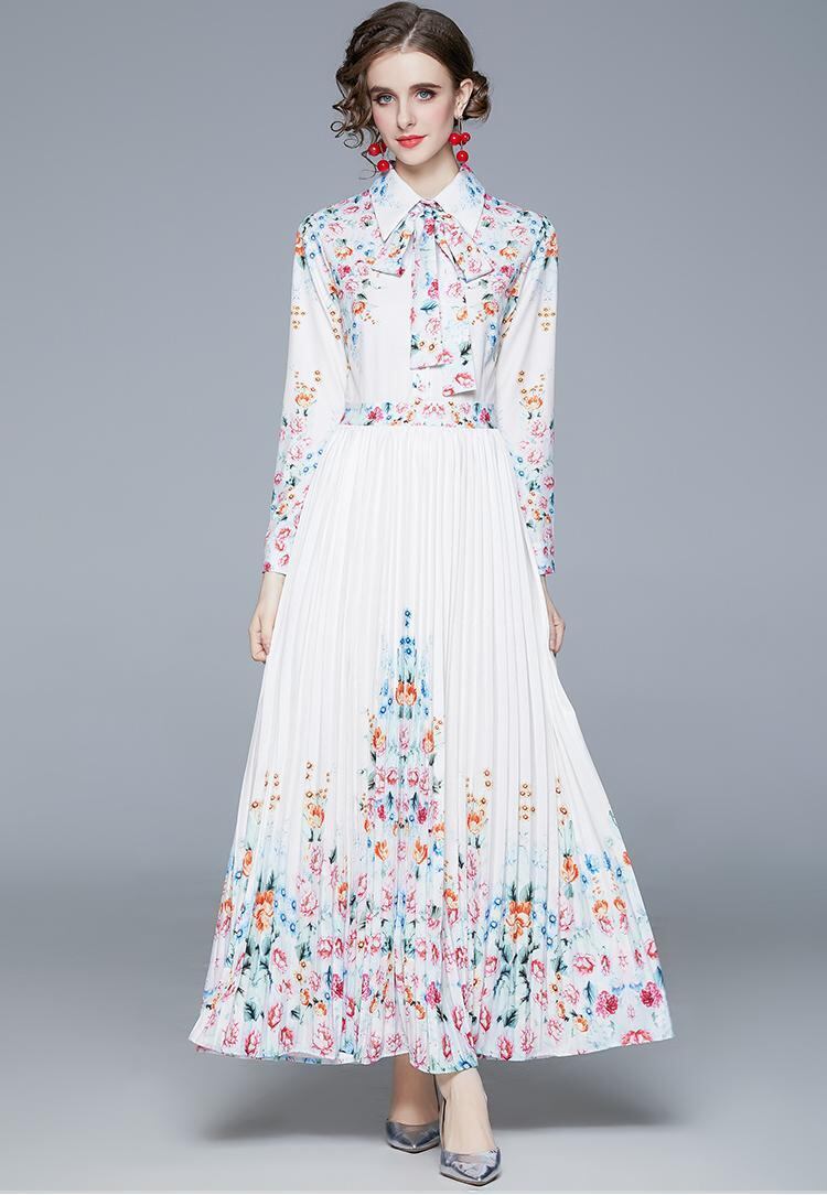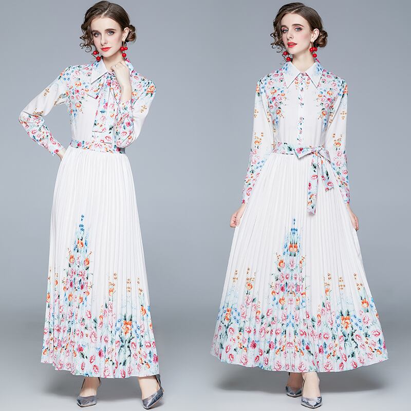 ワンピース 白 ホワイト 花柄プリント フラワー 長袖 ロング丈 プリーツスカート 襟付きワンピース リボン ラグジュアリー おしゃれ お洒落 可愛い 大人可愛い 大人女子 フェミニン ラブリー モテ ガーリー 普段使い パーティー イベント お出かけ デート プチプラ 高見えインポートファッション ネットショッピング 流行り 流行 トレンド ギフト プレゼン 上品 シック 大人の女性 花柄 フローラル 華やか ゴージャス 豪華 海外セレブ風 お嬢様系 お姫様系 爽やか 春 カラフル 2XLあり レトロ感