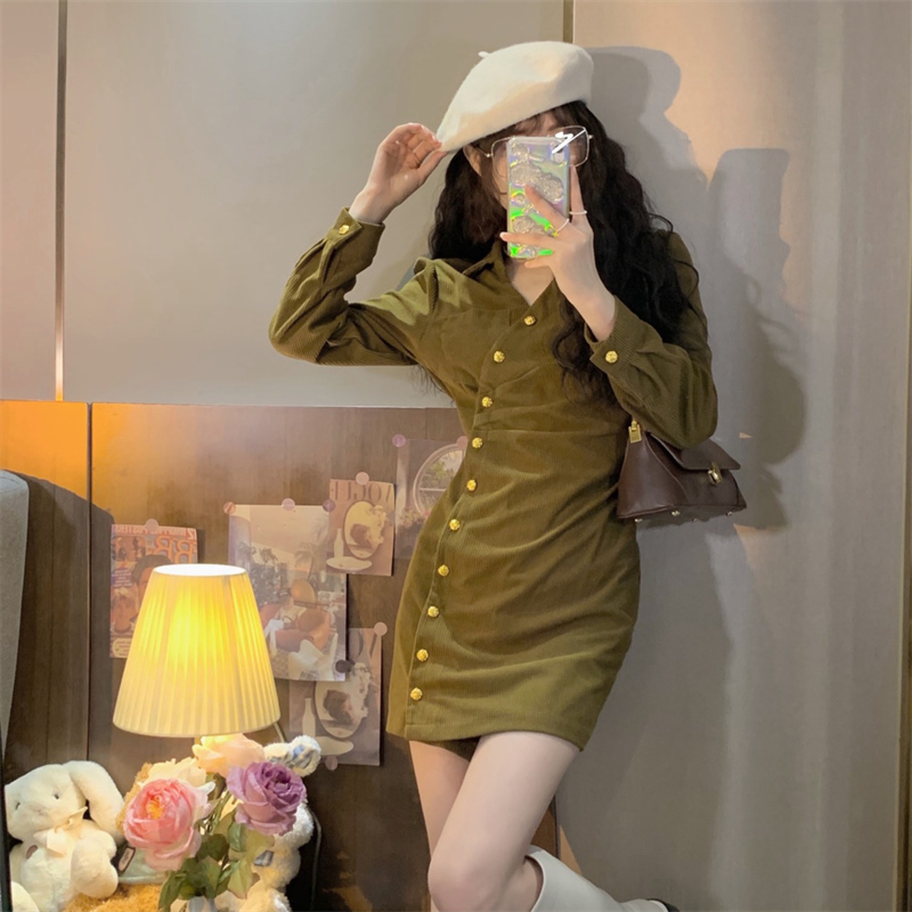 ワンピース 黒 ブラック 深緑 カーキ ショート丈 ミニ丈 ドレス 長袖 襟あり デイリー使い 大人可愛い カジュアル 大人カジュアル かっこいい ガーリー おしゃれ 大人女子 メンズライク レディライク Vネック 単色 秋 冬 デート お出かけ レディース 女性用 韓国ファッション トレンド 通学 学生 10代 20代 30代 人気 前ボタン カフスボタン 胸ポケット 無地 シンプル 個性的 ラフ こなれ感 抜け感 脚長効果 着瘦せ