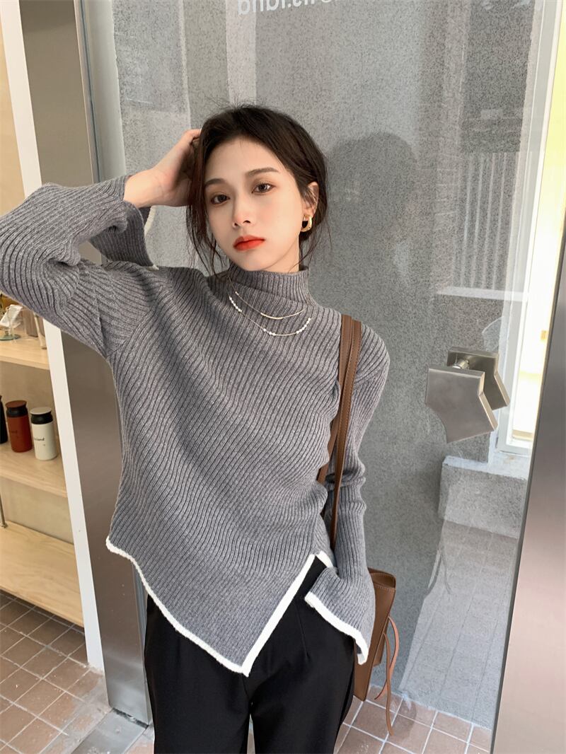 トップス ニットセーター ニット 定番 パフスリーブ プルオーバー セーター 長袖 グレー ブラック ホワイト カジュアル トレーナー タートルネック トレンド トレンディ スリット サイドスリット シンプル シック かわいい オシャレ 普段使い こなれ感 大人可愛い 10代 20代 30代 40代 レディース お出かけ ラフ 無地 飲み会 OL オフィス 通勤 学生 通学 デート 海外デザイン インポート プチプラ ランキング 大人クール 海外デザイン 韓国デザイン オルチャン 海外ファッション 楽ちん