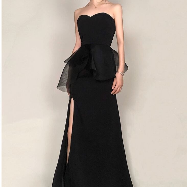 ステージドレス マーメイドドレス ロング丈ドレス パーティードレス イブニングドレス ロングドレス シンプル ブラック 無地 演奏会ドレス チューブトップ マーメイドライン ペプラム 結婚式 ウエディング 二次会 発表会 特別な日 ディナー 誕生日 大人クール スタイリッシュ オトナモード トレンディ トレンドファッション 透け感 とろみ感 人気デザイン フォーマル エレガント セクシー 主役級 大人 上品 20代 30代 40代 発表会 ステージ ホテル 高見え 格上げ 脚長 安い インスタ映え