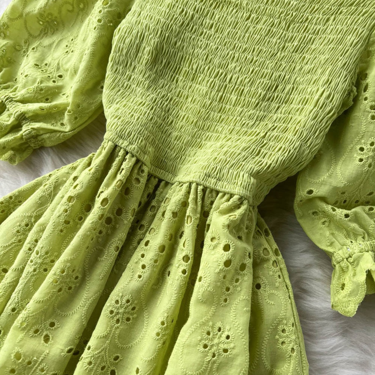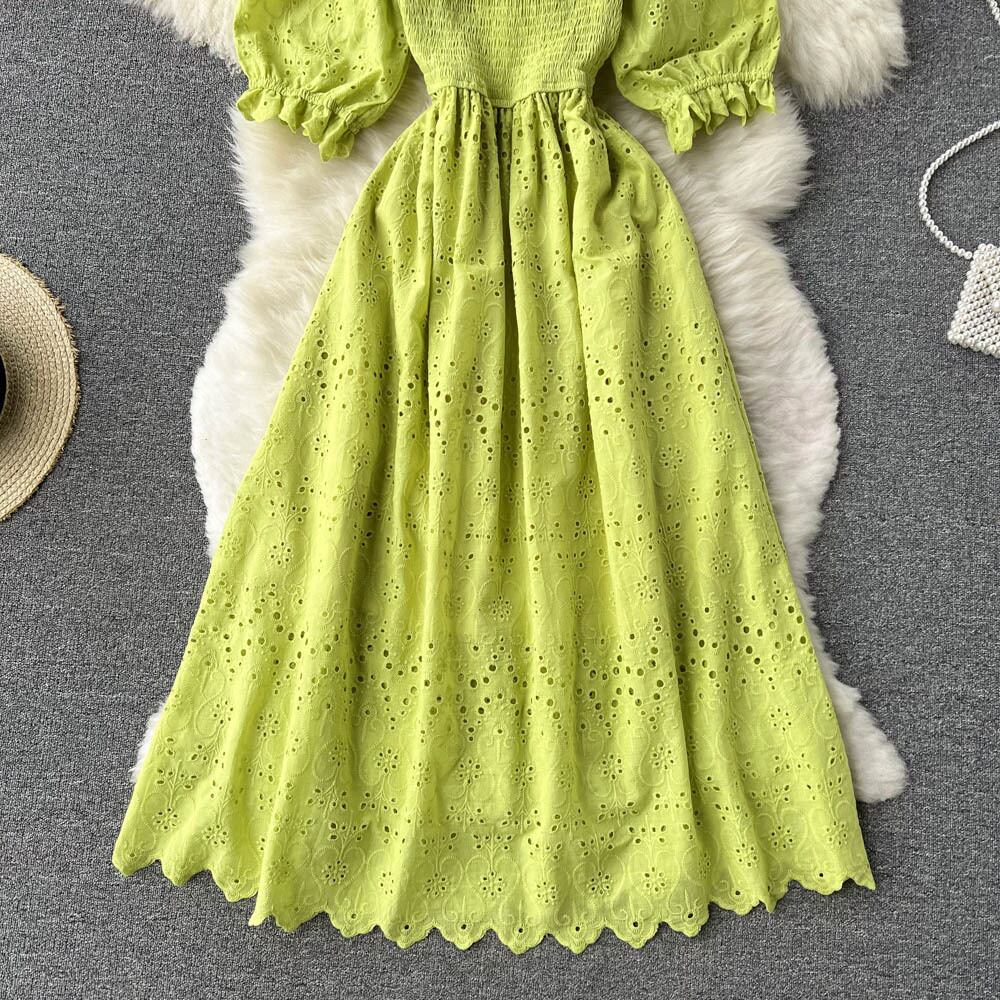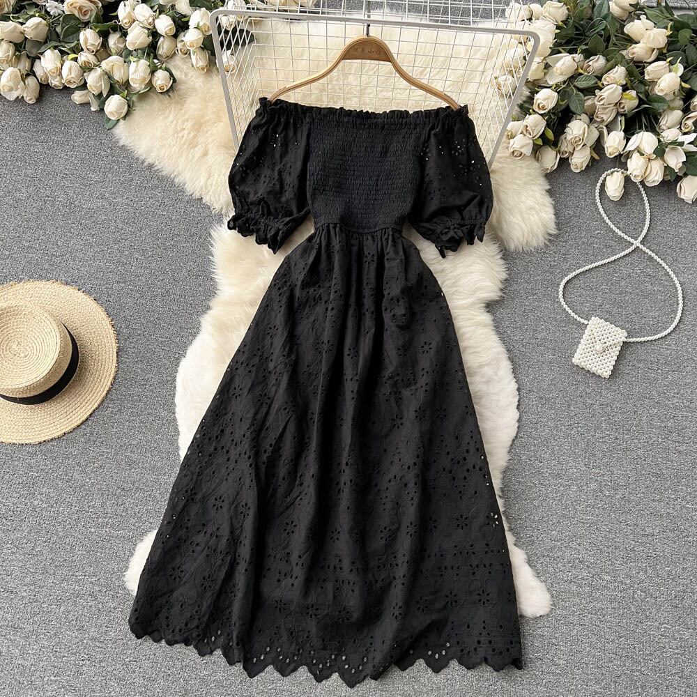 ワンピース ドレス ワンピドレス 新作 レディース ロング ワンピ ナチュラル 涼し気 袖あり 半袖 ボリューム袖 オフショルダー ハイウエスト フレアスカート Aラインワンピ 透け感 レース かわいい 大人可愛い シンプル フェミニン おしゃれ ラフ ラブリー ガーリー 抜け感 爽やか リラックス 春 夏 白 ホワイト 黒 ブラック 緑 グリーン ピンク 刺繍 パンチングレース 春 夏 10代 20代 30代 パーティー デート プール リゾート 海 旅行 お出かけ インスタ映え トレンド