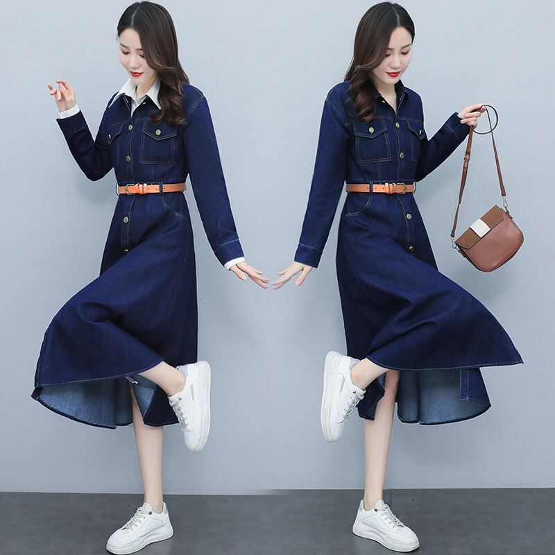 長袖デニムドレス デニムワンピース ロングデニム デニムブルー フェイクワンピース ホワイトシャツ ロングスカート 長袖 襟付き スタンダードカラー ウエストマーク ベルト ボタン ボタンダウン 前開き 定番 スタンダード かわいい 大人可愛い 大人 大人女子 きれいめ おしゃれ お洒落 シンプル ラブリー キュート ガーリー フェミニン 10代 20代 30代 学生 通学 デート お出かけ 女子会 休日 普段使い カジュアル こなれ感 ラフ ルーズ 抜け感 ゆったり ゆる パーティー イベント 人気