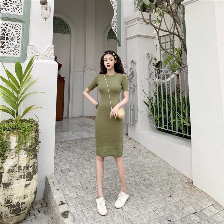 ワンピース レディース ミドル丈 膝上 ショートスカート ラウンドネック ひざ丈 膝丈 袖あり 半袖 スリム 細身 ハイウエスト 春 シンプル カラバリ レッド 赤 ピンク パープル 紫 ブラック 黒 グリーン 緑 イエロー 黄色 かわいい 大人可愛い きれいめ 上品 おしゃれ レトロ フェミニン ラブリー キュート ガーリー ワンサイズ オルチャン 韓国ファッション 無地 春 10代 20代 30代 OL 学生 デート お出かけ 女子会 パーティー イベント 旅行 モテ 個性的 主役級