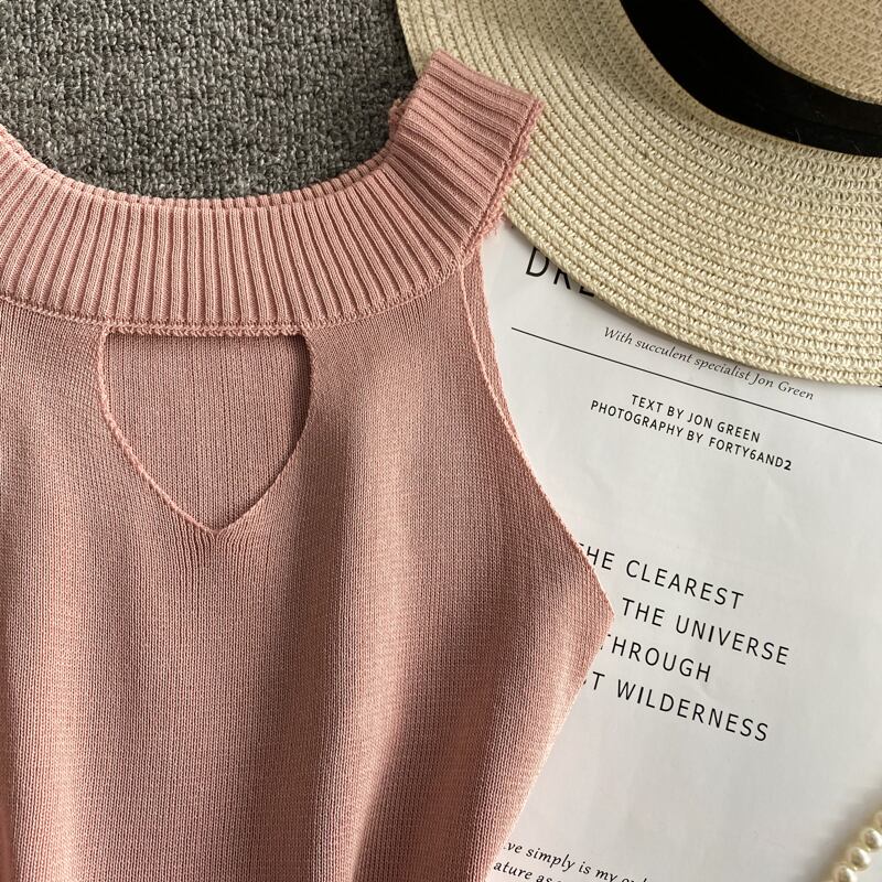 トップス ニット 袖なし ノースリーブ Uネック ラウンドネック 襟なし 海外デザイン カットアウト フロントカットアウト フロントカットアウト 穴開き 伸縮性 黒 ブラック 白 ホワイト ピンク 無地 かわいい 大人可愛い 大人 大人女子 きれいめ おしゃれ お洒落 シンプル ラブリー キュート ガーリー フェミニン 10代 20代 学生 通学 デート お出かけ 女子会 休日 普段使い カジュアル こなれ感 抜け感 スリム タイト ラフ ゆる 夏 セクシー インパクト インスタ映え パーティー イベント