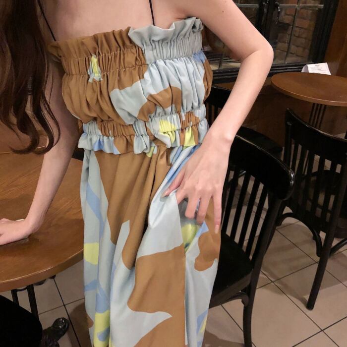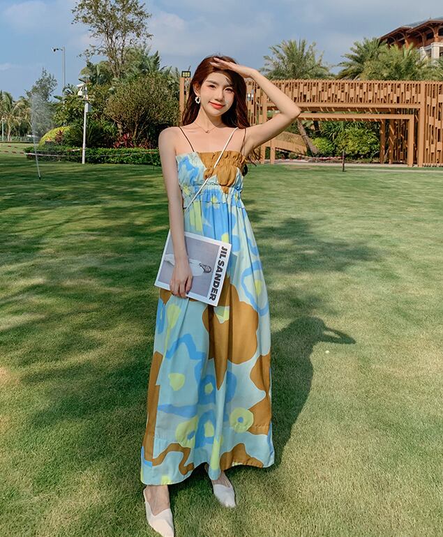 ワンピース キャミワンピース リゾートワンピ ロングスカート ロング丈 袖なし ノースリーブ 襟なし ギャザー ハイウエスト 青 ブルー ポップ かわいい 大人可愛い 大人 大人女子 きれいめ おしゃれ お洒落 シンプル ラブリー キュート ガーリー フェミニン 10代 20代 学生 通学 デート お出かけ 女子会 休日 普段使い カジュアル こなれ感 抜け感 ラフ ルーズ ゆったり ゆる リゾート 海 プール フローラル 花柄 フラワー ボタニカル セクシー モテ カラフル 華やか パーティー イベント