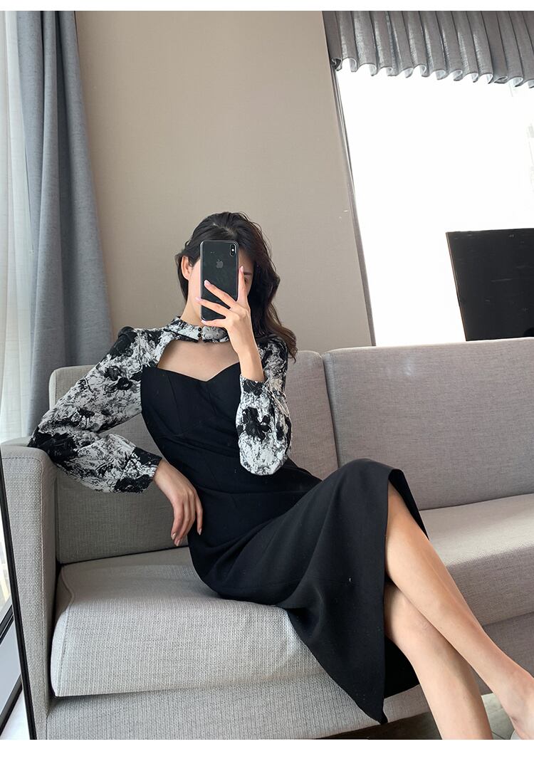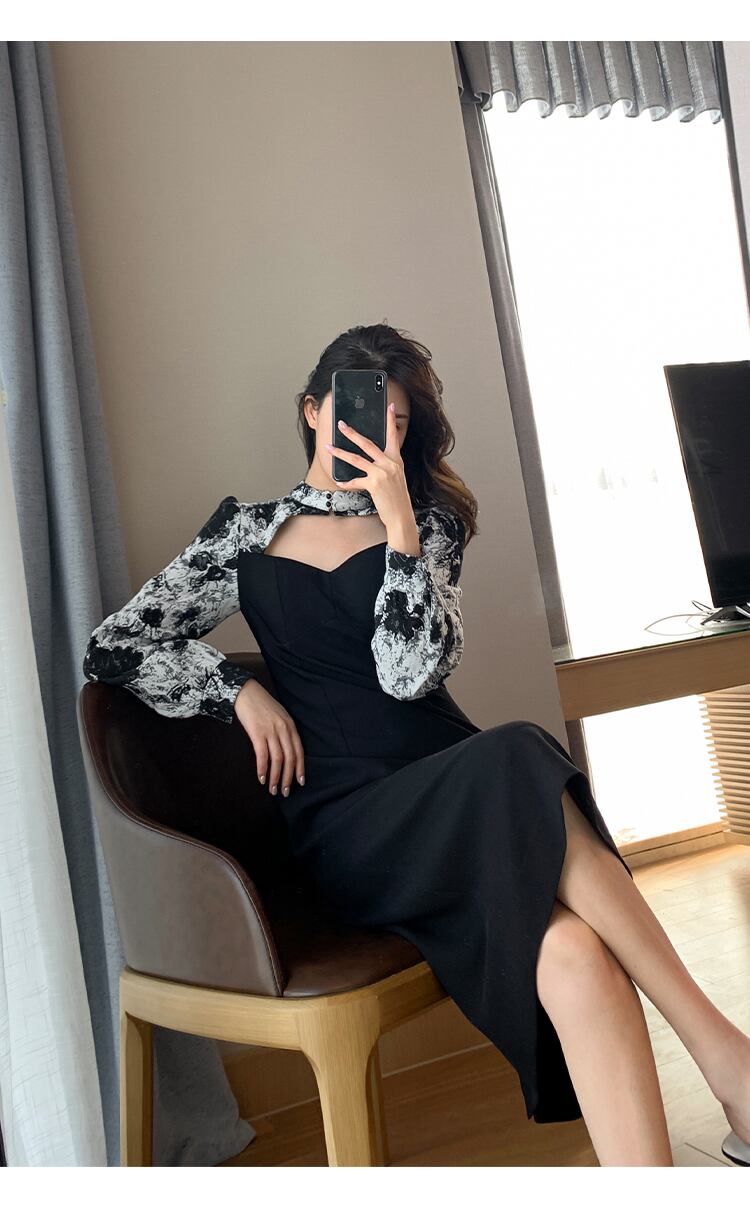 絞り染め風 ブラックドレス ワンピース 長袖ワンピース ホルダーネック ブラック 黒 フレンチレトロデザイン センス ニッチ ロングワンピース プラスサイズ フローラル ロングスカート ウエストドレス 0代 20代 30代 L XL 2XL 3XL 4XL トレンド トレンディインポート プチプラ 大人きれい 注目 ゆる可愛い ふんわり イベント 海外デザイン インポートファッション お出かけ デート シンプル 通学 学生 休日 女子会 デイリー かわいい フェミニン 女の子 細見え おすすめ 普段使い