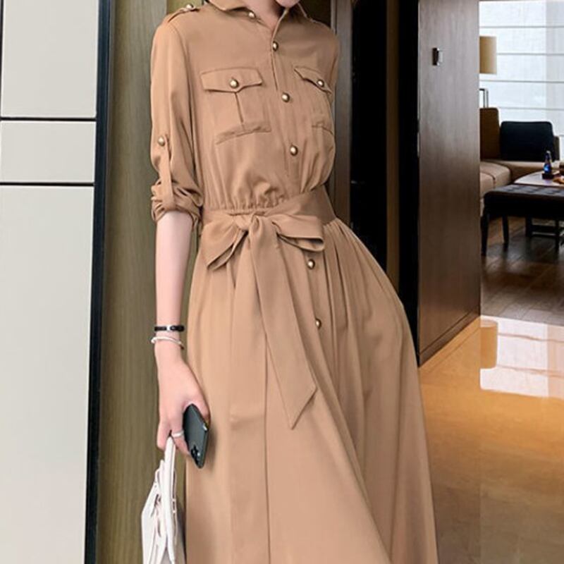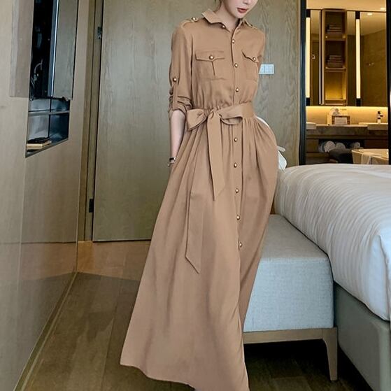 ワンピース レディース シャツワンピース 袖あり 長袖 襟付き フレア ウエストリボン ポケット ボタン 大人可愛い きれいめ シンプル カジュアル 大人 上品 おしゃれ お洒落 かわいい 大人女子 こなれ感 ルーズ 個性的 クール 存在感 とろみ感 抜け感 M L XL 2XL 3XL 4XL ベージュ ベージュ 春 秋 10代 20代 30代 40代 オフィス OL 通勤 学生 通学 デート お出かけ 休日 リゾート 旅行 着回し 普段使い 重ね着 韓国 オルチャン ファッション 楽ちん 体系カバー