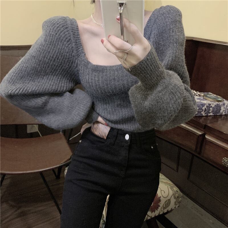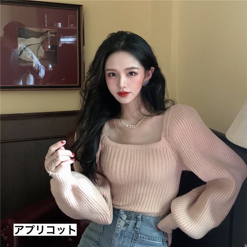 トップス パフスリーブ ニット セーター 長袖 無地 ふわふわ かわいい 大人可愛い きれいめ シンプル カジュアル 大人きれい 上品 おしゃれ お洒落 大人可愛い 大人女子 ルーズ とろみ感 スクエアネック オフショルダー オフショル 袖あり 黒 ブラック 灰色 グレー 大人カラー アプリコット ワンサイズ 20代 30代 女の子 学生 通学 デート お出かけ 女子会 休日 旅行 着回し 普段使い 韓国 韓国系 オルチャン ファッション コーデ スタイル モテ プチプラ トレンド 流行 インスタ映え