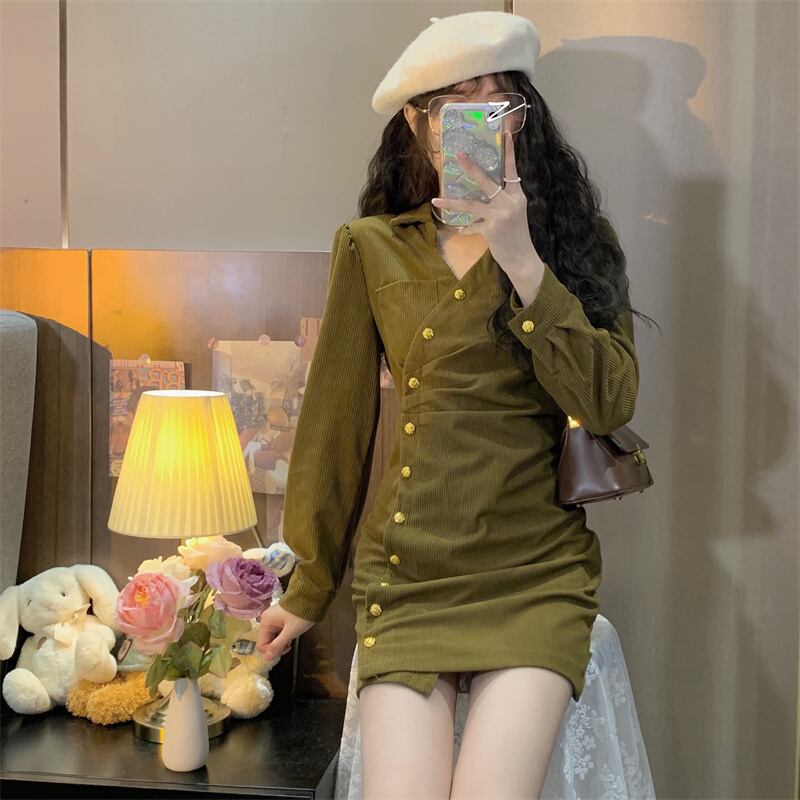 ワンピース コーデュロイワンピース デザイン重視 ミニ丈 ショート丈 長袖 無地 スリム 細身 ストレート かわいい 大人可愛い きれいめ シンプル カジュアル 大人 上品 おしゃれ お洒落 大人可愛い 大人女子 セクシー とろみ感 Vネック ショート 袖あり 黒 ブラック 緑 グリーン 大人カラー S M L 20代 30代 オフィス ビジネス 学生 通学 デート お出かけ 女子会 休日 旅行 着回し 普段使い 韓国 ファッション コーデ スタイル モテ 美脚 プチプラ トレンド 流行 インスタ映え