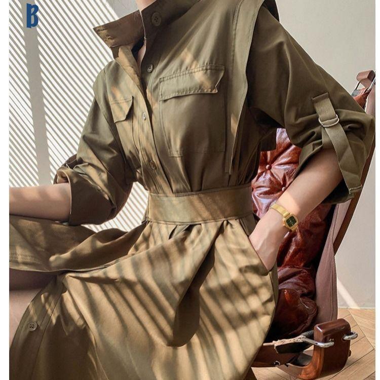 ワンピース レディース シャツワンピース 袖あり 長袖 襟付き フレア ウエストマーク ベルト ボタン 大人可愛い きれいめ シンプル カジュアル 大人 上品 おしゃれ お洒落 インポート 海外 かわいい 大人女子 こなれ感 クール エレガント 存在感 かっこいい トレンチ風 抜け感 M L XL 2XL 3XL 4XL カーキ ベージュ 春 秋 10代 20代 30代 40代 オフィス OL 通勤 学生 通学 デート お出かけ 休日 旅行 普段使い 韓国 オルチャン ファッション 楽ちん 体系カバー