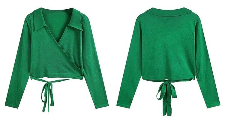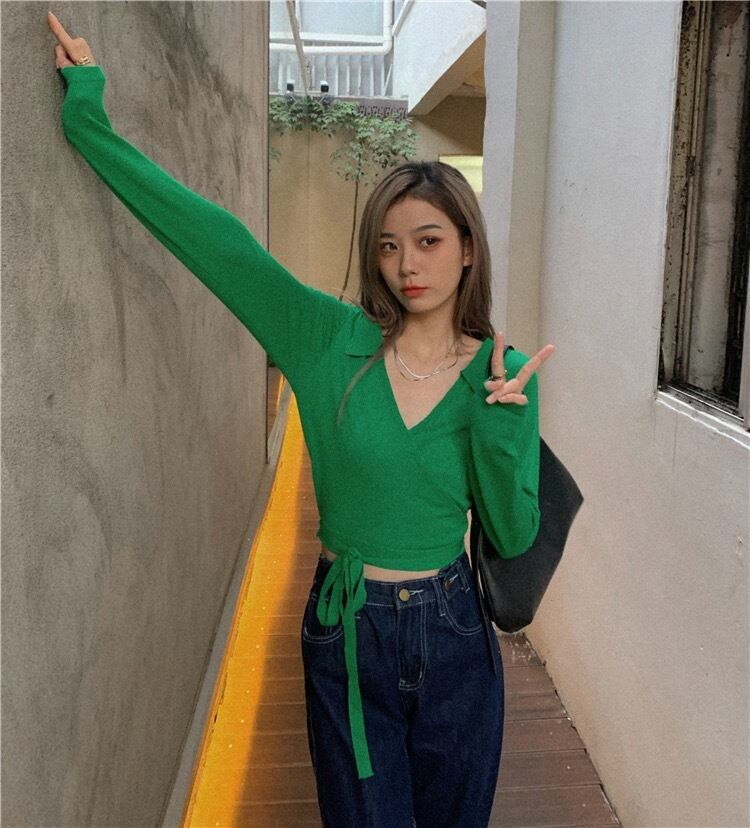 トップス レディース シャツ グリーン 緑 ブラウン 茶色 ブラック 黒 新作カラー ウエストリボン 長袖 襟付き Vネック ストラップ ルーズ ショート丈 スリムフィット スリム 細身 ストレート ストリート プルオーバー 無地 シンプル レトロ かわいい フェミニン 大人可愛い 大人女子 おしゃれ クール 個性派 ガーリー セクシー 存在感 海外 インポート 10代 20代 学生 通学 OL 通勤 オフィス 学生 お出かけ 休日 女子会 着回し 普段使い おすすめ オルチャン 韓国ファッション