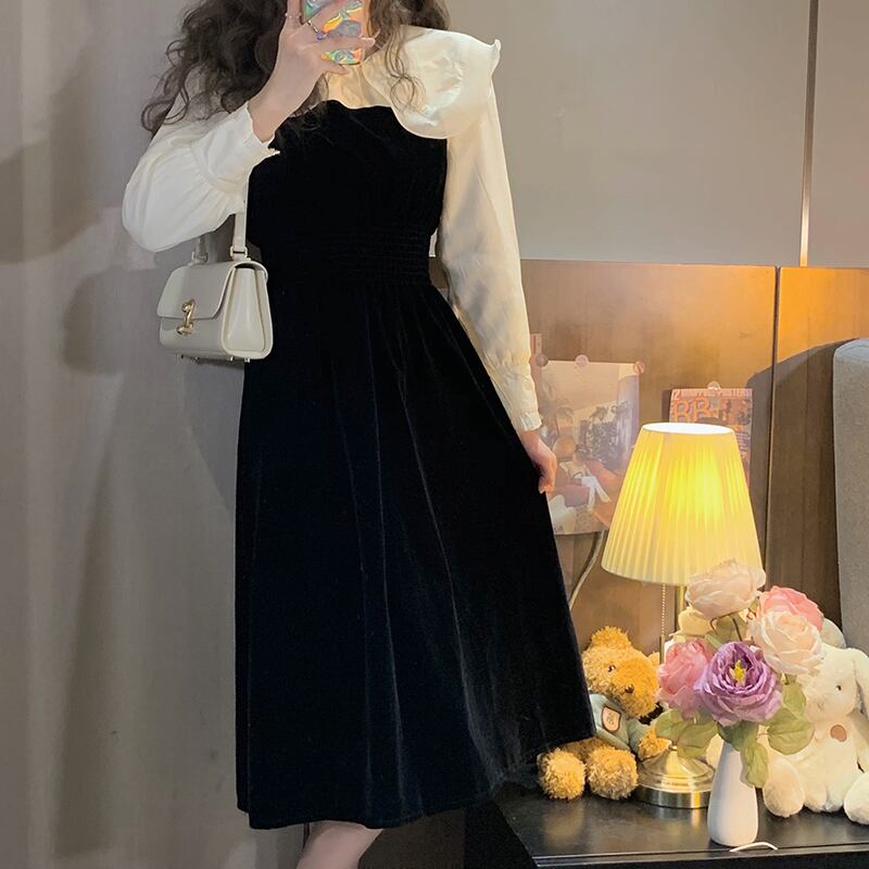 ワンピース ドレス ワンピドレス ベルベットドレス ベルベット ブラック 黒 冠婚葬祭 きれいめ シンプル 新しい ミドル丈 ボトミングスカート ロングスリーブ パーティー 二次会 飲み会 合コン 女子会 発表会 主役級 ラクチンコーデ Aラインワンピース ミディアム丈 ミディ フレアースカート フレアー 美脚効果 大人可愛い インポートファッション 海外デザイン プチプラ 海外ファッション 外国風 モテ メンズライク 韓国デザイン オルチャン 海外ドレス 人気ワンピース お呼ばれ 結婚式 大人可愛い