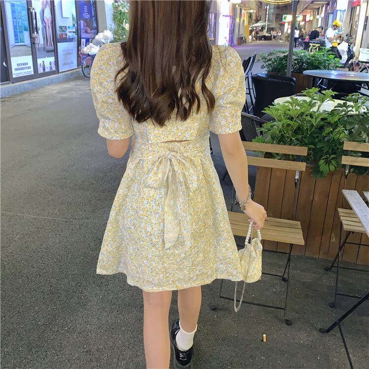 ワンピース 花柄 フラワープリント ミニスカート ミニ丈 ショート丈 半袖 バックリボン パフスリーブ バルーンスリーブ スクエアネック ウエストマーク ウエストリボン バックリボン リボン スリット カットアウト 黄色 イエロー 青 ブルー ピンク かわいい 大人可愛い 大人 大人女子 きれいめ おしゃれ お洒落 シンプル ラブリー キュート ガーリー フェミニン 10代 20代 学生 通学 デート お出かけ 休日 普段使い カジュアル こなれ感 抜け感 フローラル 花柄 小花柄 フラワー ボタニカル