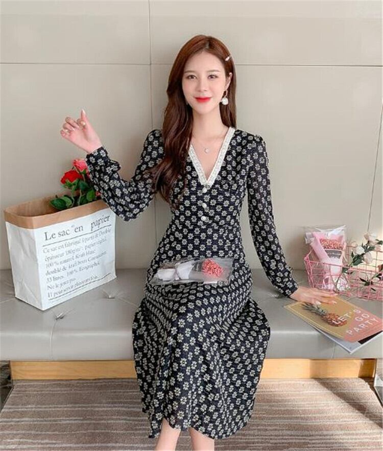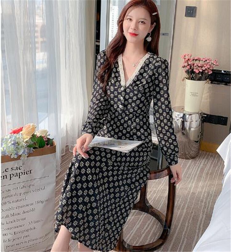 ワンピース フラワープリント フレアースカート フレアー 美脚 エレガント Vネック 袖あり 長袖 襟なし 花柄 レース 黒 白 ブラック ホワイト フェミニン キュート 可愛い 膝下丈 ロング丈 スリム 人気 飾りボタン ボタン ハイウエスト 大人可愛い 大人 大人カラー 10代 20代 30代 オフィス 通勤 OL 学生 通学 休日 デート お出かけ 旅行 女子会 お泊まり パーティー イベント リゾート 普段使い お揃い 双子 韓国 韓国風 コーデ スタイル 脚長 モテ 美脚 トレンド インスタ映え