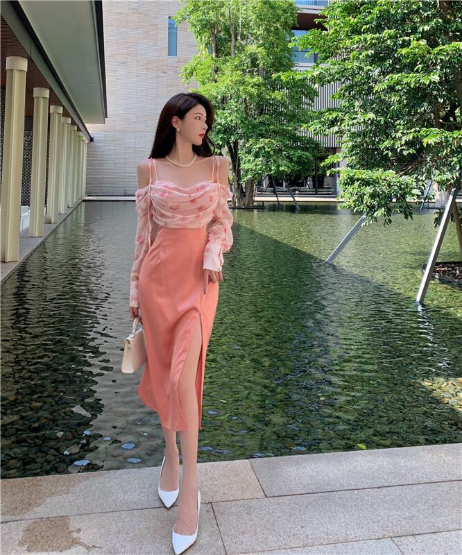 ワンピース スカート レディース 女性用 ドレス 長袖 スカート ロング丈 キャミソール ノースリーブ オフショル レース フリル スリット 薄手 ハイウエスト 大人可愛い フォーマル カジュアル 大人カジュアル かわいい ガーリー おしゃれ かっこいい 大人女子 メンズライク レディライク モテ パール 花びら 花 桃 ピンク 春 夏 お出かけ デート 韓国ファッション トレンド OL 通勤 通学 学生 10代 20代 30代 人気 明るめ シンプル ラフ こなれ感 個性的 タイト 細みえ セクシー