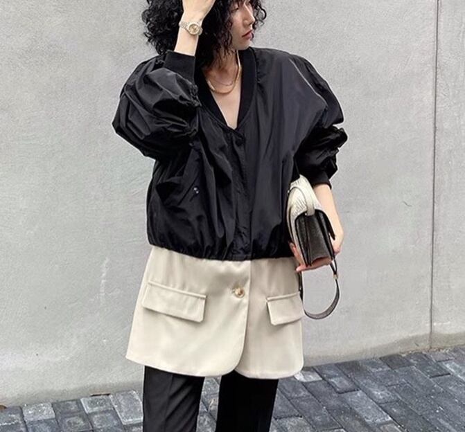アウター ジャケット トップス レディース 女性用 長袖 膝上 ロング丈 レトロ Vネック ジッパー パッチワーク ポケット ボタン くしゅくしゅ 大人可愛い カジュアル 大人カジュアル かわいい ガーリー おしゃれ かっこいい 大人女子 シック メンズライク レディライク フリーサイズ ワンサイズ 単色 ベージュ 黒 ブラック 秋 冬 春 お出かけ デート 韓国ファッション トレンド OL 通勤 通学 学生 10代 20代 30代 人気 明るめ シンプル ラフ こなれ感 個性的 大きめ ゆったり
