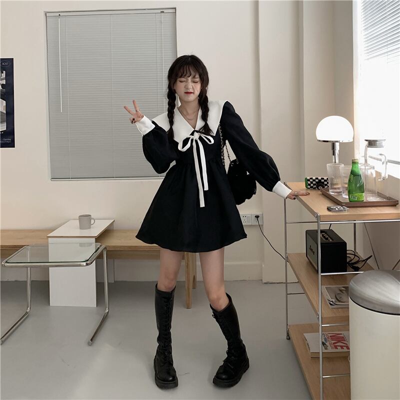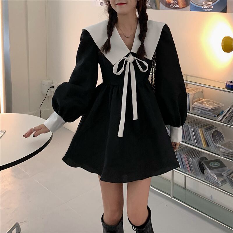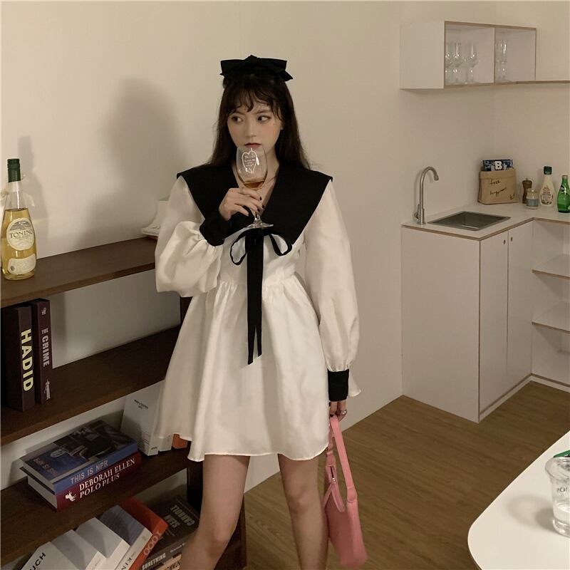 ワンピース ミニスカート ミニ丈 ショート丈 袖あり 長袖 ボリューム袖 Vネック 襟付き セーラーカラー リボン モノトーン 白 ホワイト 黒 ブラック 制服 学校 セーラー服 インポートデザイン かわいい 大人可愛い 大人女子 きれいめ おしゃれ お洒落 シンプル ラブリー キュート ガーリー フェミニン 10代 20代 学生 通学 デート お出かけ 女子会 休日 普段使い カジュアル こなれ感 抜け感 ラフ ルーズ モテ ゆったり ゆる 可憐 シック インパクト 披露宴 パーティー イベント 個性的