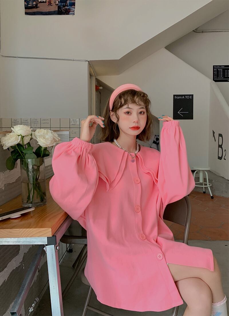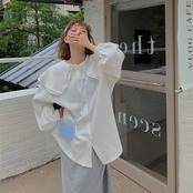 トップス ブラウス シャツ 袖あり 長袖 ラッフルカフス 襟付き ビッグカラー ラウンドカラー ダブルカラー ワイド ボタン ボタンダウン 前開き フリル ふんわり 大きめ 緑 グリーン 白 ホワイト ピンク かわいい 大人可愛い インポートデザイン 大人女子 きれいめ おしゃれ お洒落 シンプル ラブリー キュート ガーリー フェミニン 10代 20代 30代 学生 通学 デート お出かけ 女子会 休日 普段使い カジュアル こなれ感 抜け感 ゆったり ゆる ラフ ルーズ 披露宴 パーティー イベント