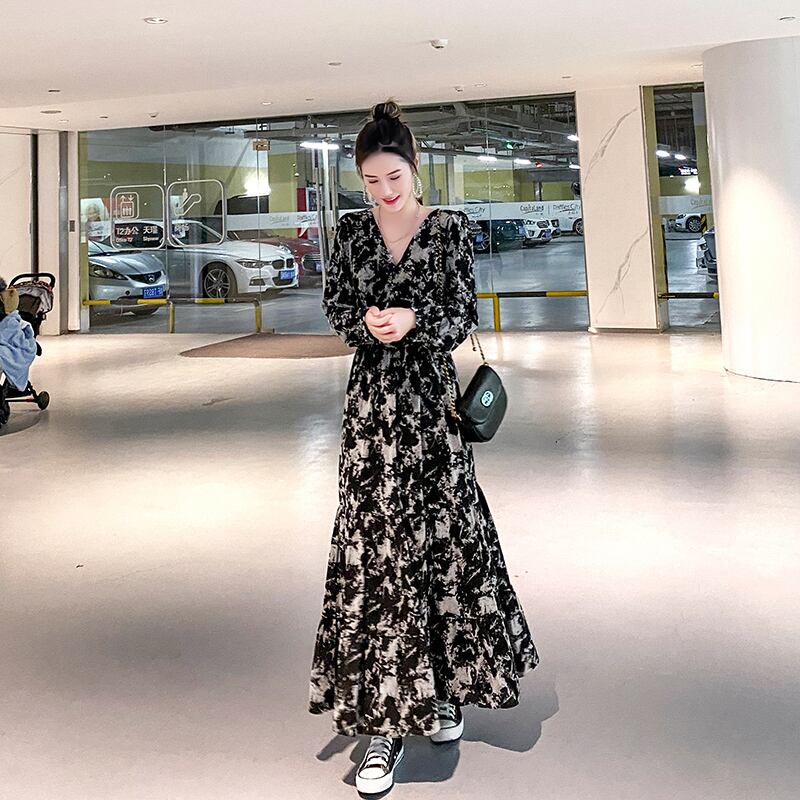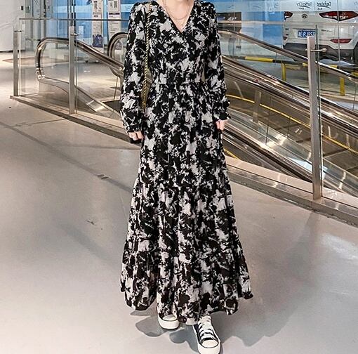 ワンピース レディース フレアワンピース ひざ丈 ロング ロング丈 マキシ 袖あり 七分袖 Vネック フレア Aライン ハイウエスト 大人可愛い きれいめ シンプル 大人 上品 おしゃれ お洒落 レトロ フェミニン 個性的 クール モード系 セクシー エレガント 主役級 存在感 黒 ブラック 柄 春 夏 秋 二次会 謝恩会 10代 20代 30代 40代 OL 学生 デート お出かけ 女子会 パーティー イベント リゾート 旅行 韓国 韓国系 オルチャン ファッション コーデ 楽ちん 脚長
