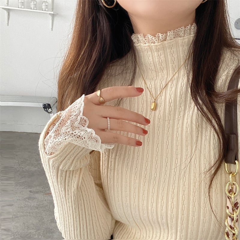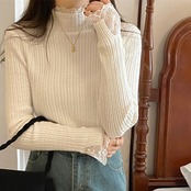 トップス ニット セーター 白 ホワイト 黒 ブラック ベージュ 長袖 無地 スリム タイト ストレート 伸縮性 ワッフル編み 収縮性 レース袖 きれいめファッション 人気商品 かわいい 大人可愛い きれいめ シンプル カジュアル 大人 上品 おしゃれ お洒落 大人女子 こなれ感 ガーリー 個性的 ハイネック 20代 30代 オフィス ビジネス OL 通勤 学生 通学 デート 女子会 休日 着回し 普段使い 韓国 韓国系 オルチャン ファッション コーデ スタイル 楽ちん トレンド 流行 インスタ映え