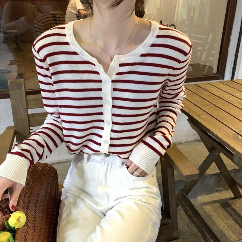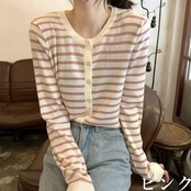 トップス アウター カーディガン レディース 横 ボーダー ストライプ フリーサイズ ワンサイズ 黄 イエロー 黒 ブラック 赤 レッド 桃 ピンク 緑 グリーン 茶 ブラウン 白 ホワイト 女性用 丸襟 長袖 レトロ ボタン 前ボタン 大人可愛い カジュアル 大人カジュアル かわいい ガーリー おしゃれ かっこいい 大人女子 シック メンズライク レディライク 秋 冬 春 お出かけ デート 韓国ファッション トレンド OL 通勤 通学 学生 10代 20代 30代 人気 シンプル ラフ こなれ感 薄手