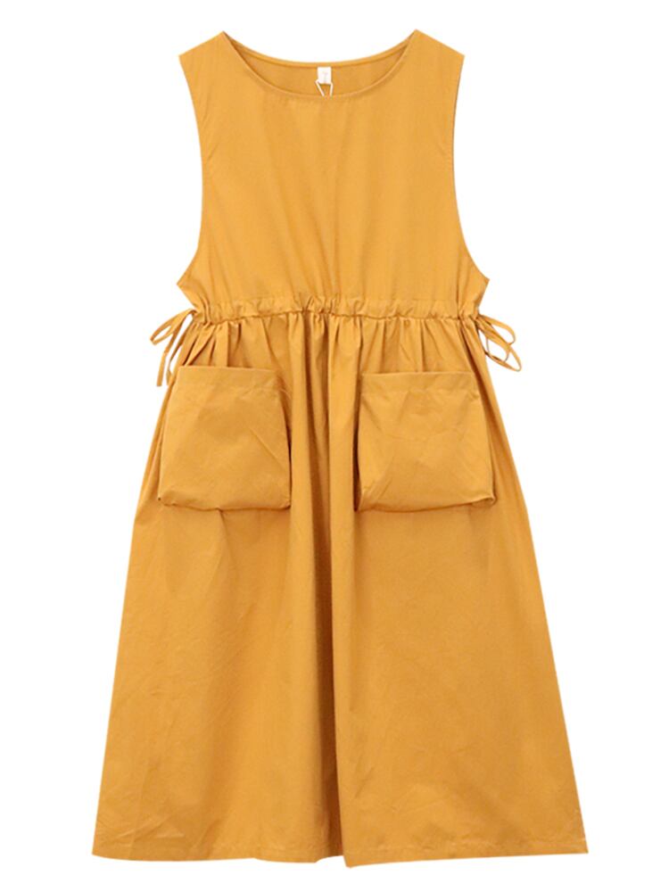 ワンピース レディース オールオーバー ジャンパースカート ロングスカート ロング丈 袖なし ノースリーブ 襟なし Uネック ラウンドネック 絞り ポケット 黄色 イエロー 黒 ブラック マタニティ ママ かわいい 大人可愛い 大人 大人女子 きれいめ おしゃれ お洒落 シンプル ラブリー キュート ガーリー フェミニン 10代 20代 30代 通勤 学生 通学 デート お出かけ 女子会 休日 普段使い カジュアル こなれ感 抜け感 ラフ ルーズ ゆったり ゆる ワイド インパクト パーティー イベント
